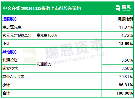 招股书显示,中文在线在香港上市前的股东架构中,
