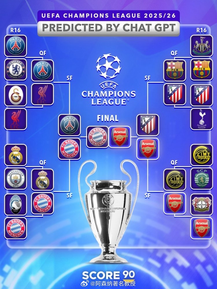 加布里埃尔一球制胜这个太经典了!Score90根据人工智能大模型ChatGPT预测,夺冠大热门阿森纳将和拜仁会师欧冠决赛,最终由加布里埃尔在第39分钟打进全场唯一进球,枪手1-0击败拜仁,成功问鼎大耳朵杯 阿森纳著名教授