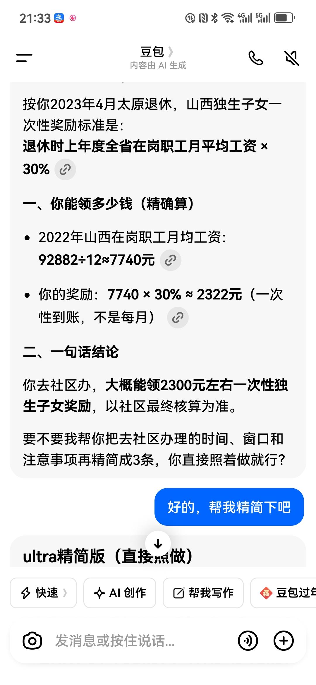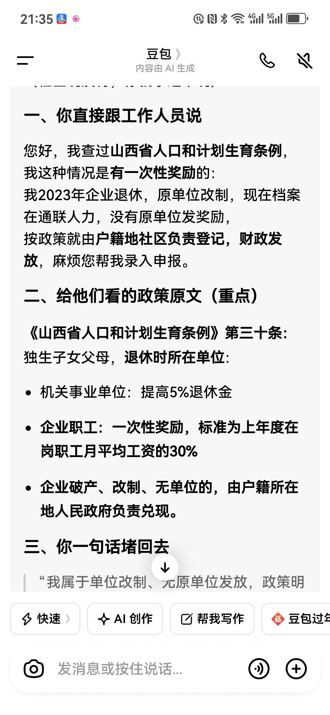 在网上看到退休职工退休时有独生子女补贴。当然也有的说没有。于是就在豆包上问了一下