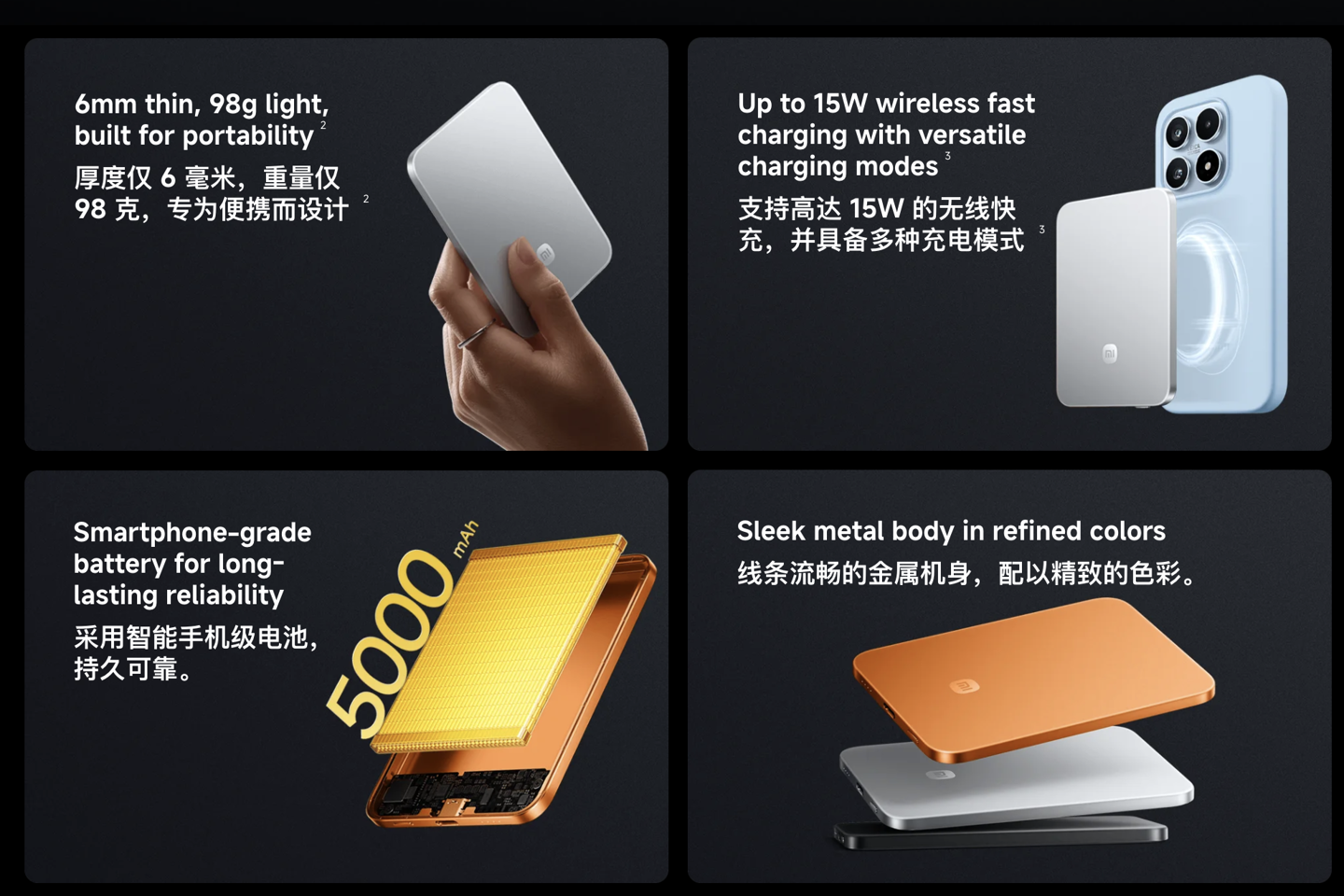 IT之家2月28日消息,小米超薄磁吸充电宝500015W现已在MWC2026展会发布,新品主打6mm超薄设计,重量98g,拥有黑色、银色以及橙色三种配色可选,支持15W无线充电、22.5W有线充电。