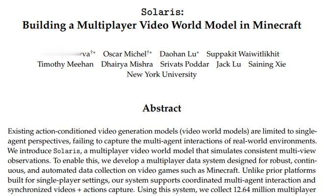 这项由纽约大学主导的突破性研究发表于2026年2月,论文编号为arXiv:2602.22208v2,研究团队开发出了名为Solaris的多人游戏世界模型。有兴趣深入了解的读者可以通过该编号查询完整论文。