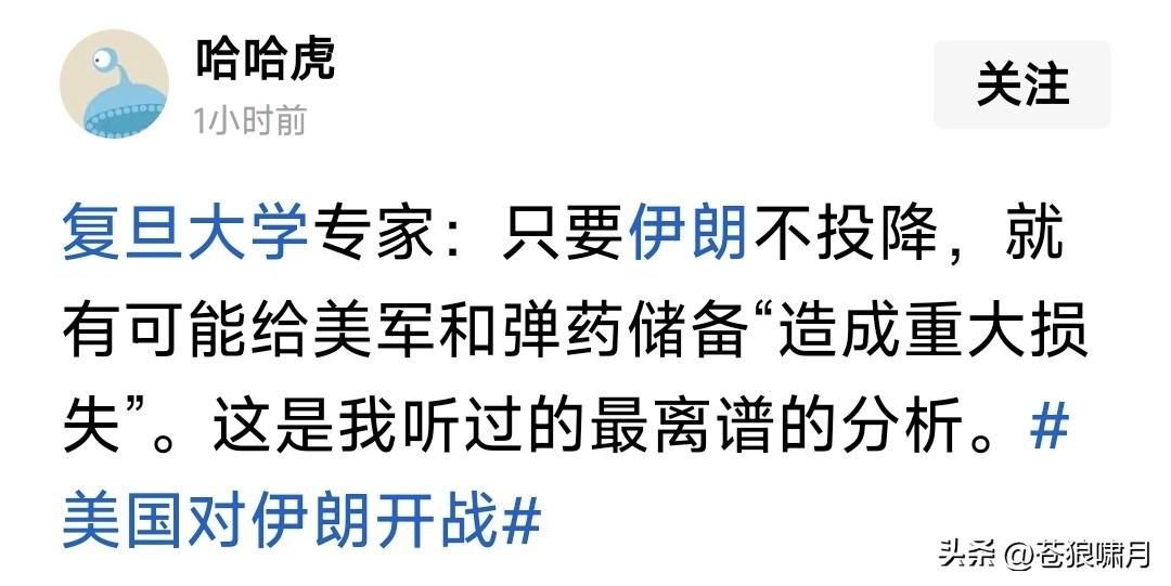 沈逸教授果然与众不同!别人都在谈论美以打击伊朗,伊朗被逼反击。他却在担心美国弹药是否够用问题? 沈逸教授称:像这种大规模打击,十分消耗弹药,你有多少弹药,才能办多大的事。美国显然弹药储备不足,已紧急动用在以色列的30万发弹药! 他说:只要伊朗不屈服不投降,一直抵抗反击下去,就会对美军弹药储备,造成重大损失,让其知难而退? 有点搞笑了!像美国这样的超级军事强国,对伊朗打击已准备月余,会出现弹药不足问题吗?何况伊朗面对美国,明显处于下风,能反击多久呢? 要知道美以打击伊朗,并不是要占领,而是与其国内反对派相呼应,促使其“神权”更迭!如果实现目标,伊朗变回亲美政权,还会继续打击吗? 最后总结:哈伊反击美以,是为消耗美军弹药吗?而是为延续“神权”吧!美以打击伊朗,也非针对伊人民,而是哈伊神权吧!达到目的就会收兵! 有人说内塔是中东“打黑办”主任!川普是世界“除恶办”主任!两个“主任”联手行动,是否能解决“抵抗之狐”,消除中东动乱之源?助力俄乌战争停战,还世界和平人类祥和?拭目以待。 …………