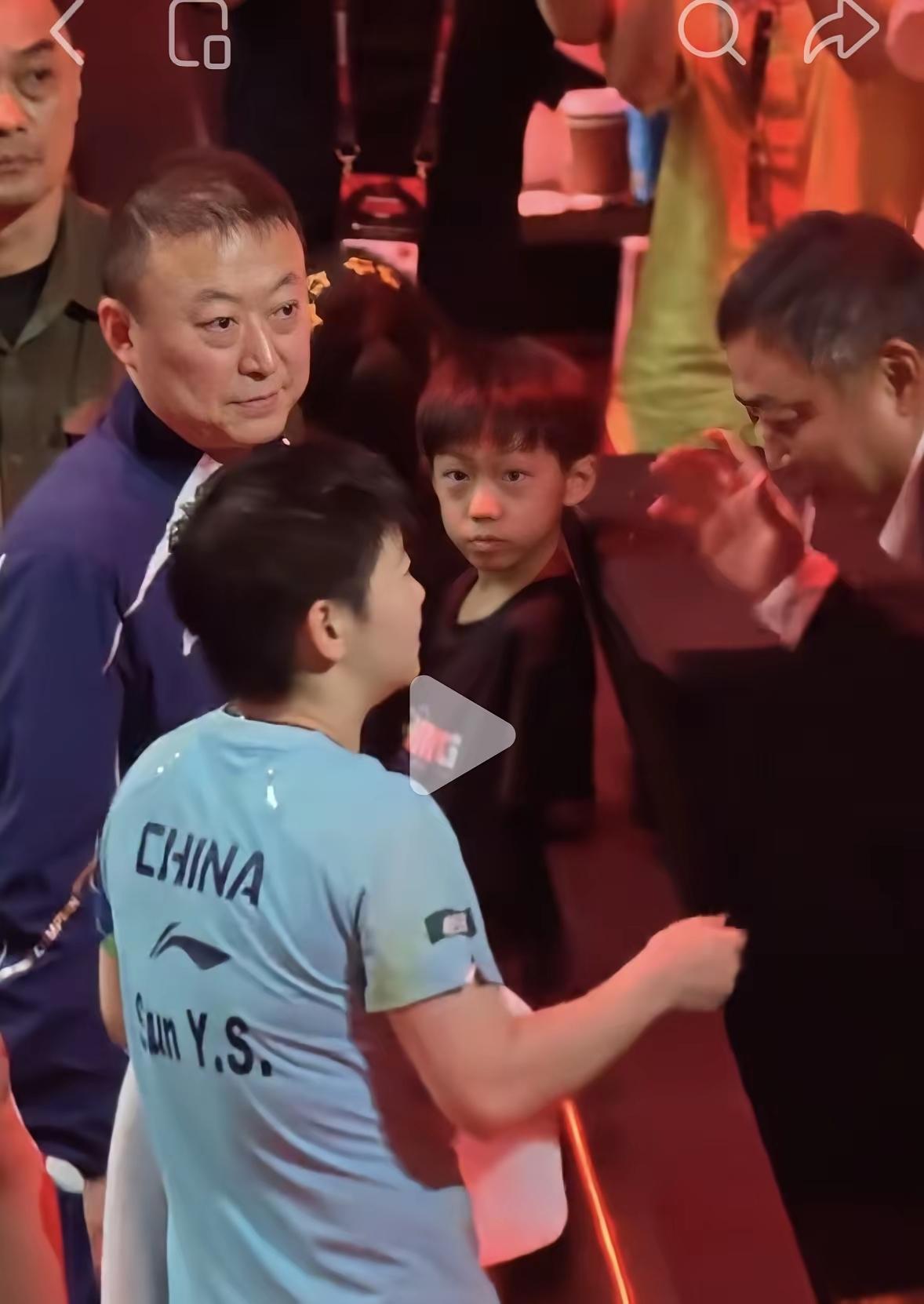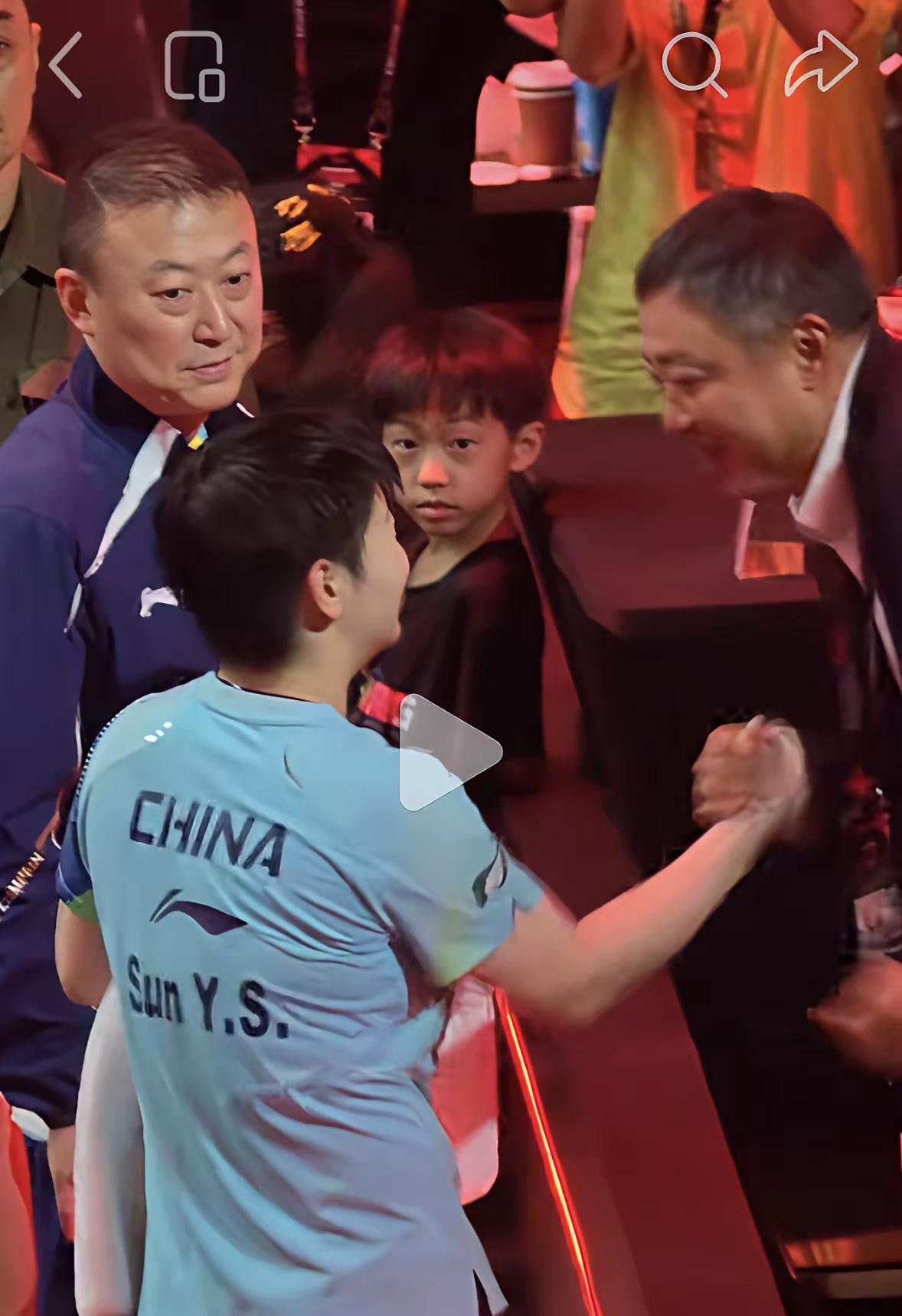 莎莎4:2战胜早田希娜后,马琳指导带莎莎去见看莎莎打球的刘国梁先生。 刘国梁先生满面笑容和莎莎握手表示祝贺,并鼓励她继续加油。这一幕虽然久违了,但又是那么熟悉,更是那么亲切。 值得一提的是,中间那个小男孩有点面熟,他是谁呢?