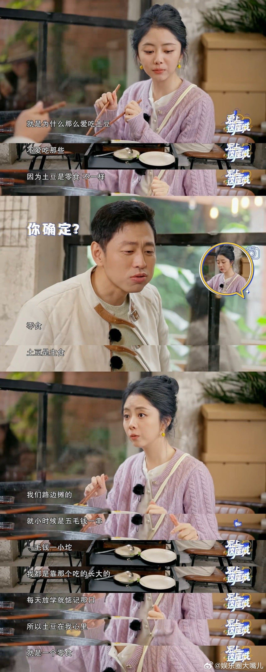 谭松韵水哥因一片土豆争起来了 别人上节目是来录综艺,谭松韵和水哥是来参加土豆辩论赛的!一个用回忆杀攻击,一个用科学理论防御,这场面太好笑了!