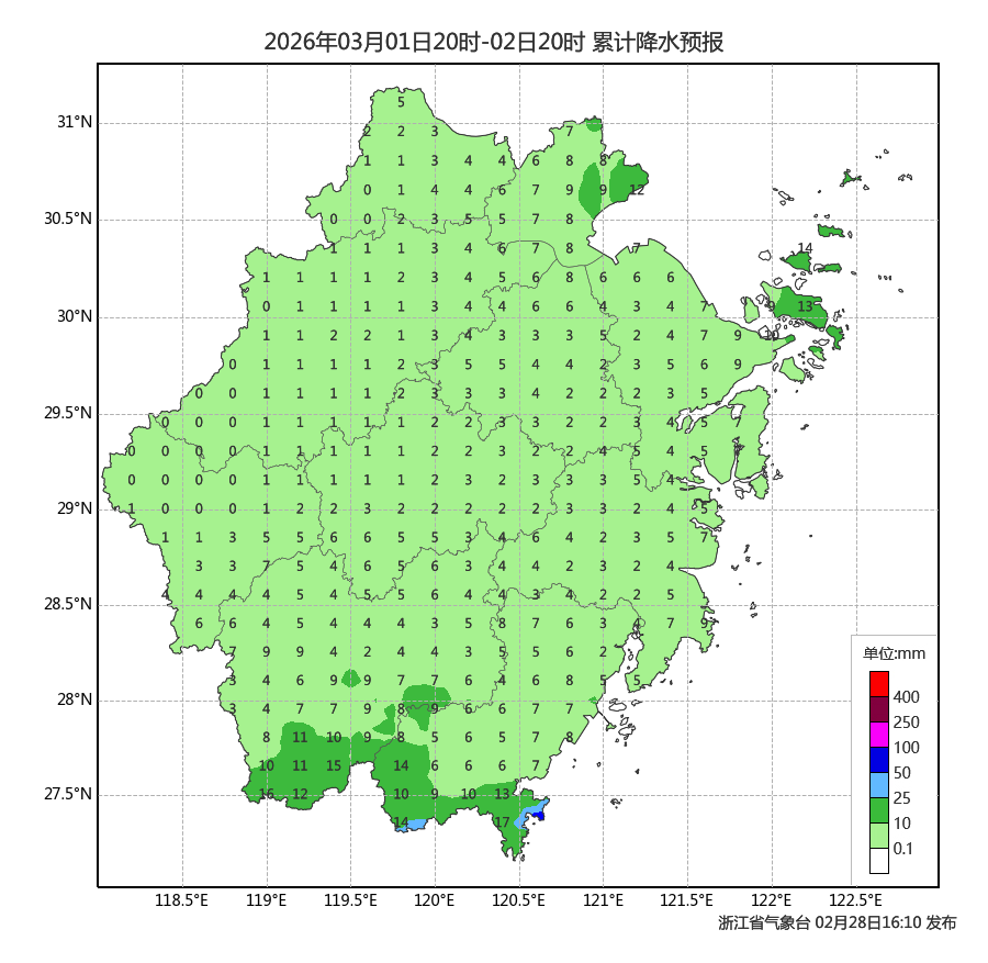 昨天夜里到今天:全省阴有中雨,其中浙南和沿海地区部分大雨局地暴雨。