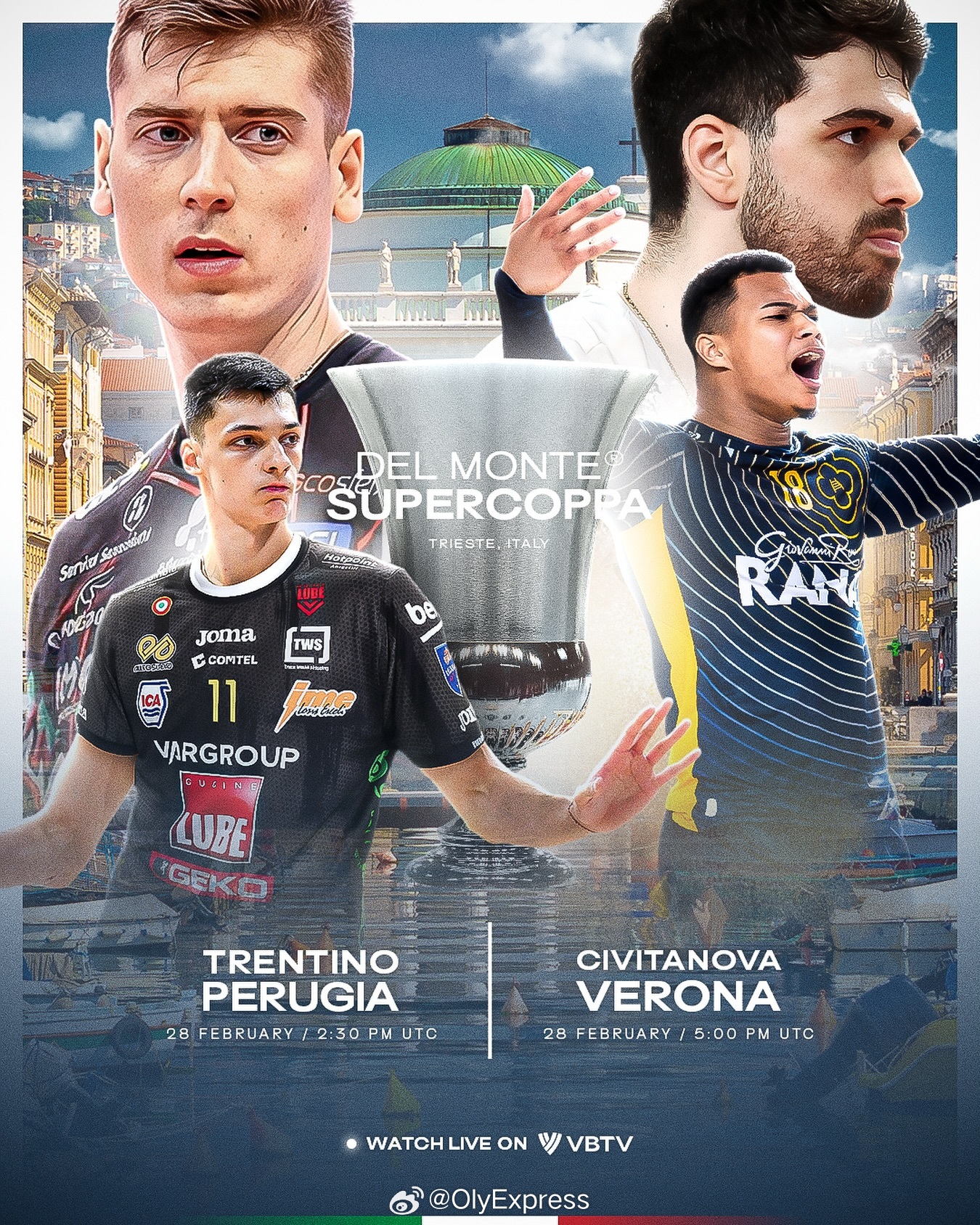 【意大利男排超级杯佩鲁贾完胜特伦蒂诺 率先晋级决赛】国际排坛战报速递 2月28日的里雅斯特,意大利男排超级杯首场半决赛,佩鲁贾直落三局以25-19/25-20/25-20完胜缺少了米切莱托的特伦蒂诺,率先晋级决赛,静候奇维塔诺瓦和维罗纳的胜者。本塔拉21分、普罗特尼茨基17分、鲁索10分,弗雷11分是特伦蒂诺唯一上双的球员。