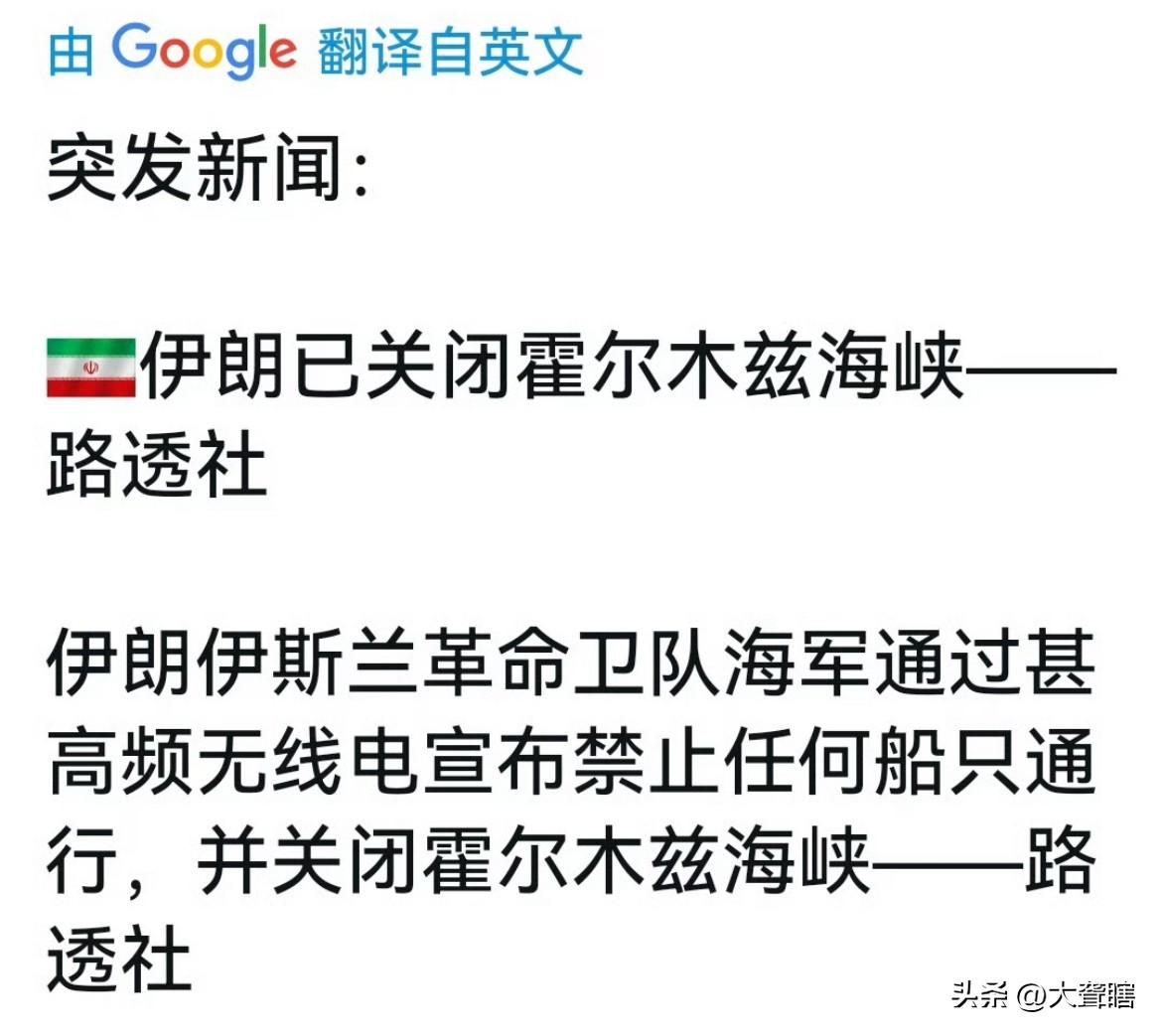 油价或暴涨,伊朗宣布关闭霍尔木兹海峡! 据《路透社》消息,伊朗革命卫队海军宣布关闭霍尔木兹海峡,任何船只都无权通行。 伊朗此举或将推高国际原油价格,无论是亚洲国家还是欧洲国家都将因此受到极大影响,而美国或将受益。