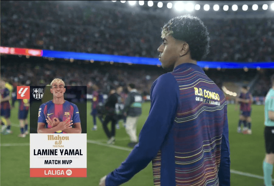 赛后,本场比赛上演帽子戏法的亚马尔当选官方评选的全场比赛最佳球员。