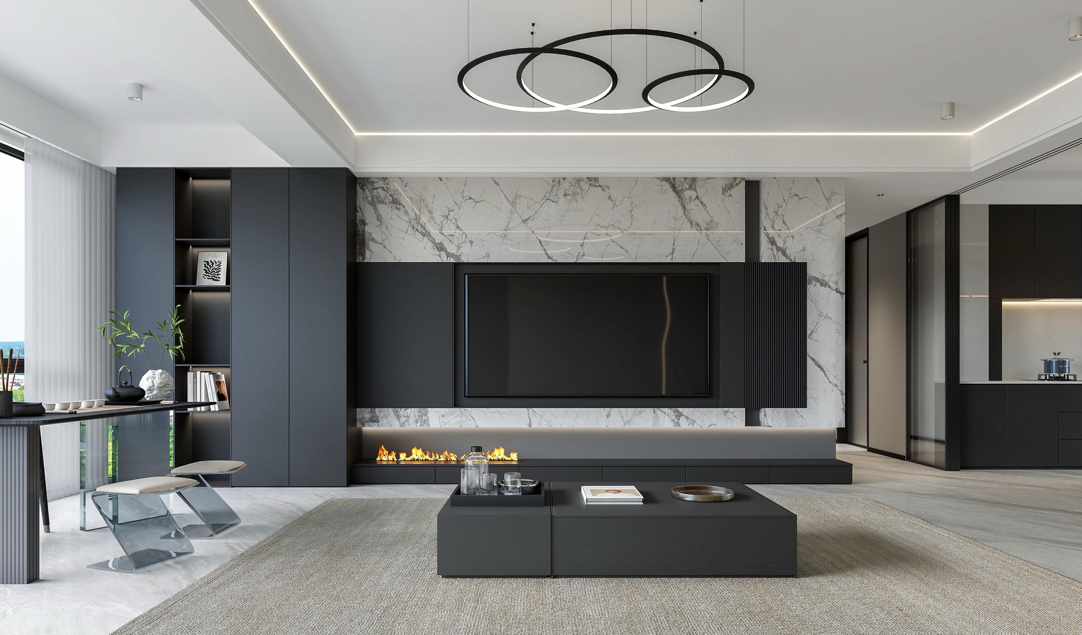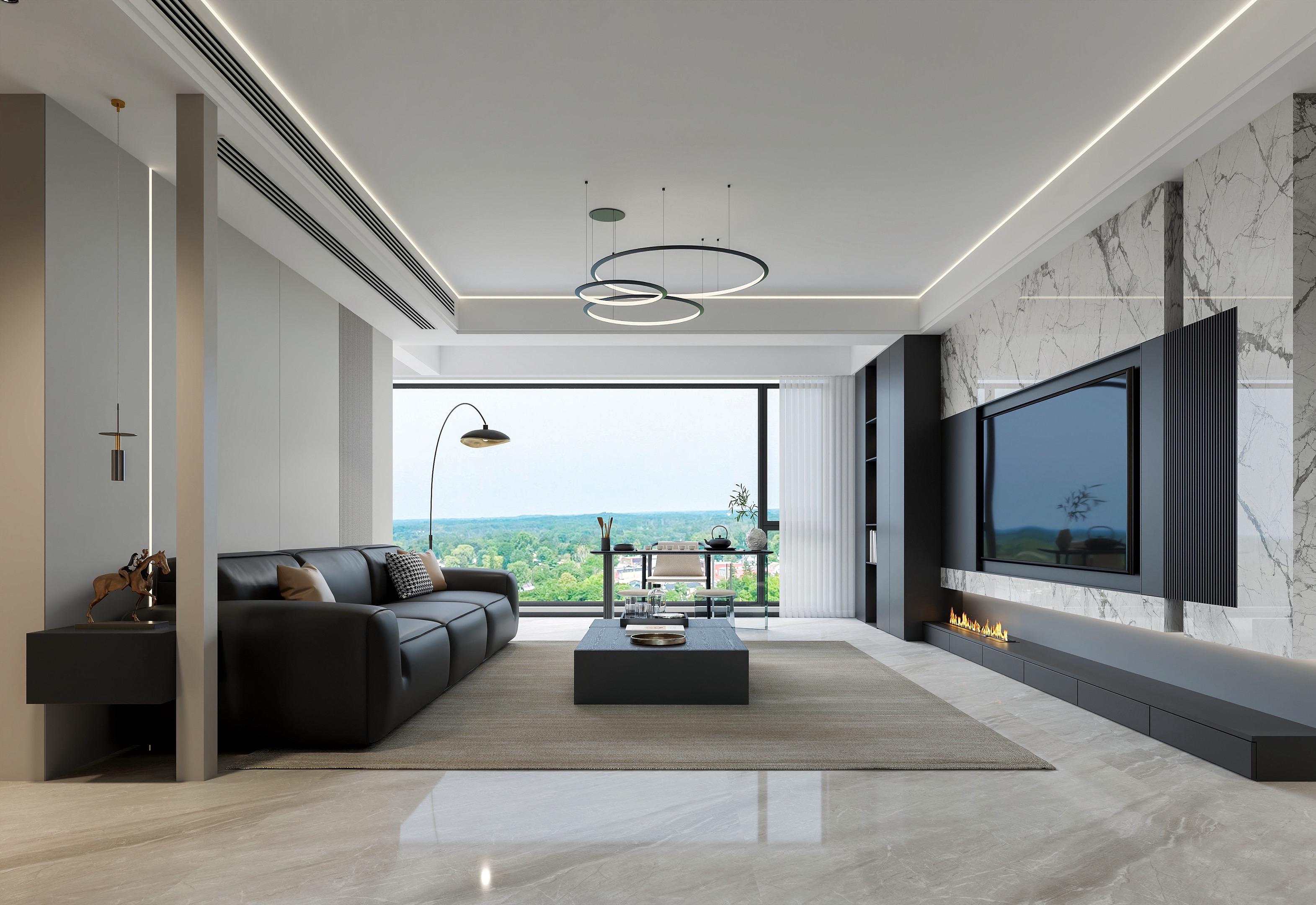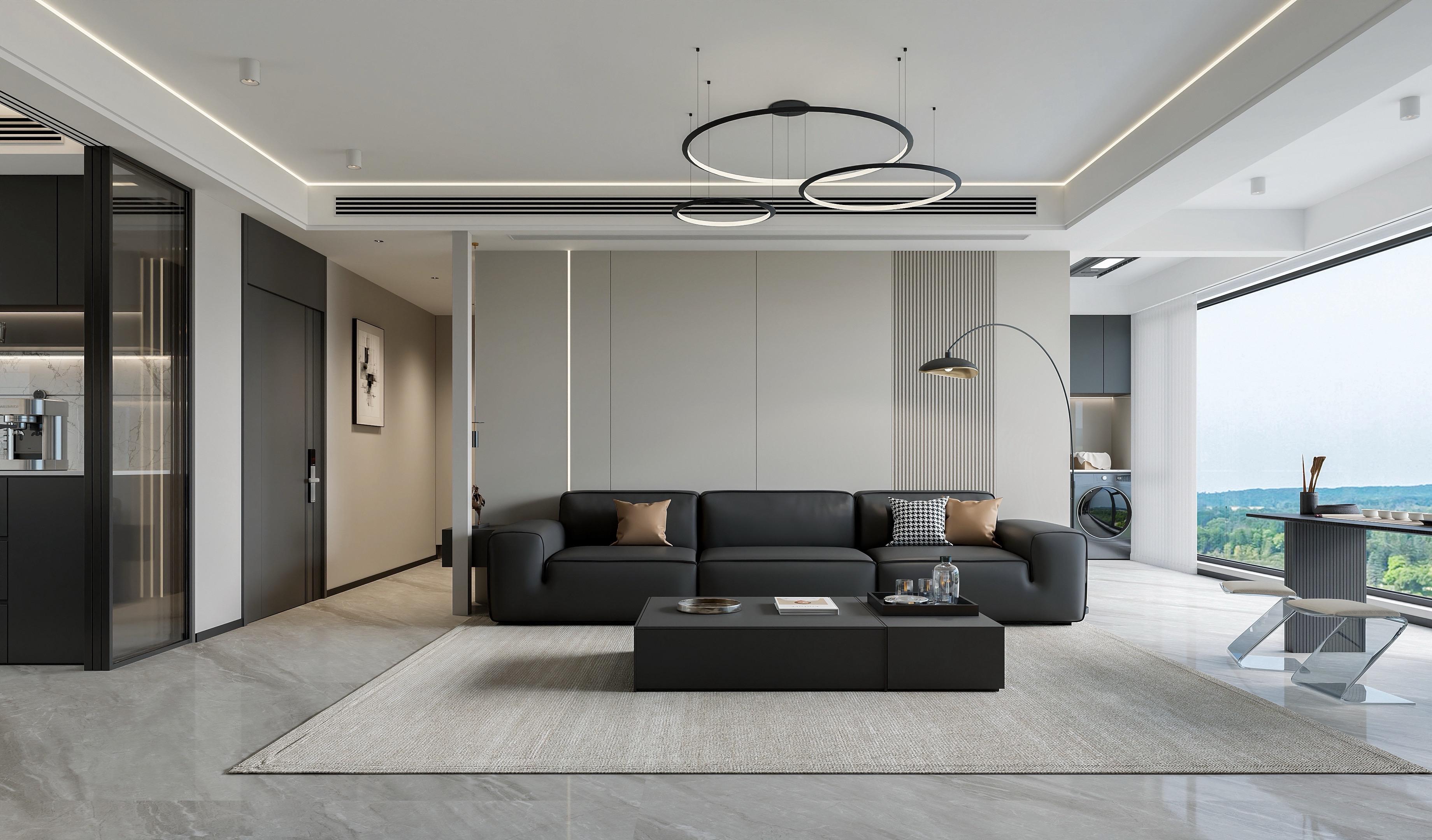 沉稳黑、纯净白、温润灰 碰撞出克制而精致的美学 利落动线、开阔格局、无界视野 大平层的气度,在极简中尽显淋漓