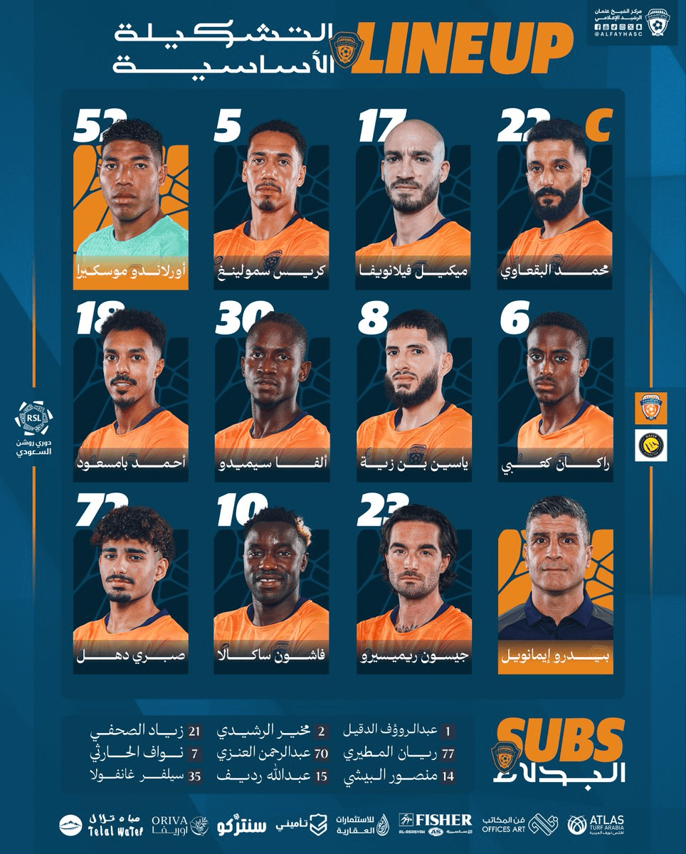 利雅得胜利替补:36-纳贾尔、4-纳德尔、23-叶海亚、2-哈纳姆、83-纳吉迪、19-哈桑、29-加里卜、9-哈姆丹