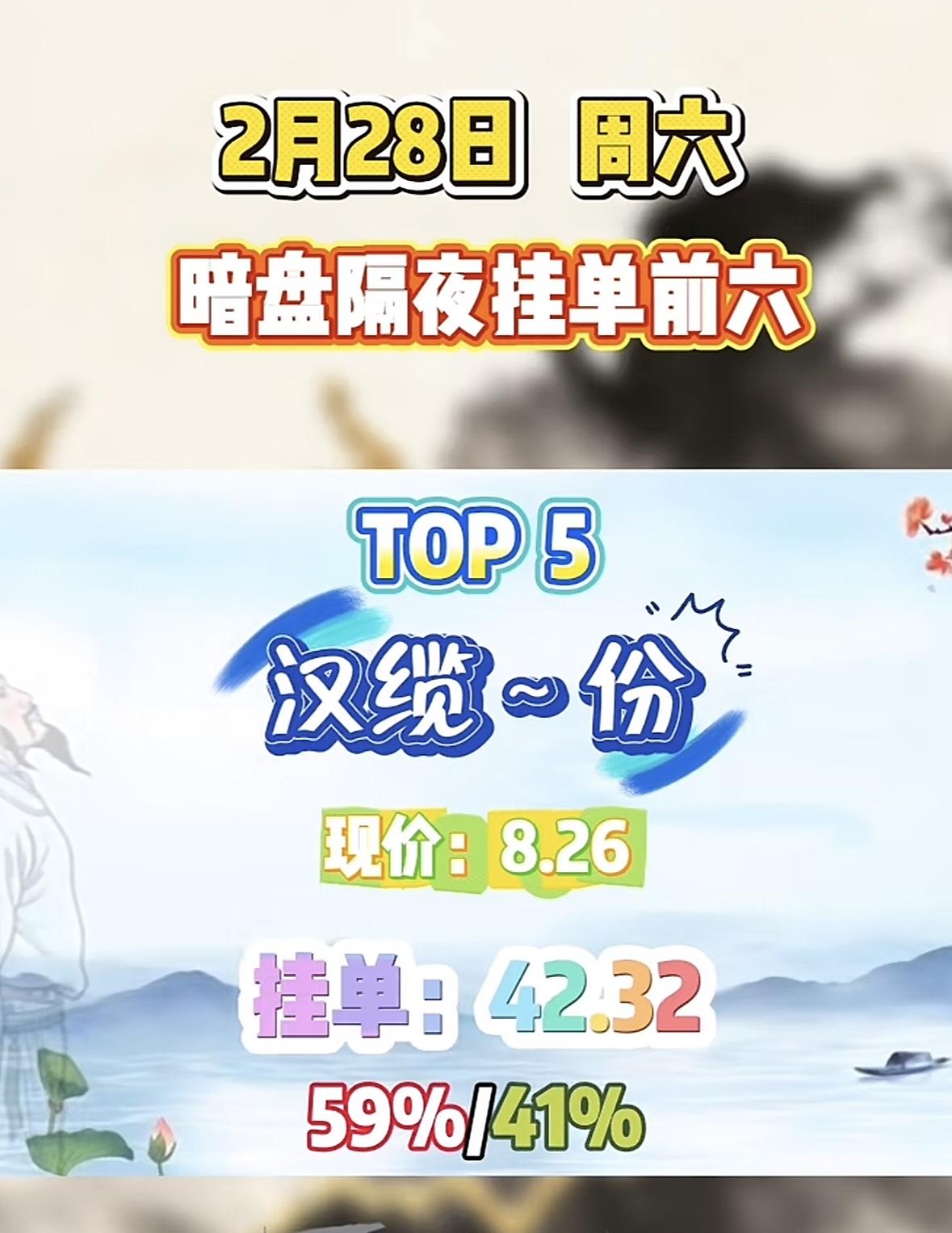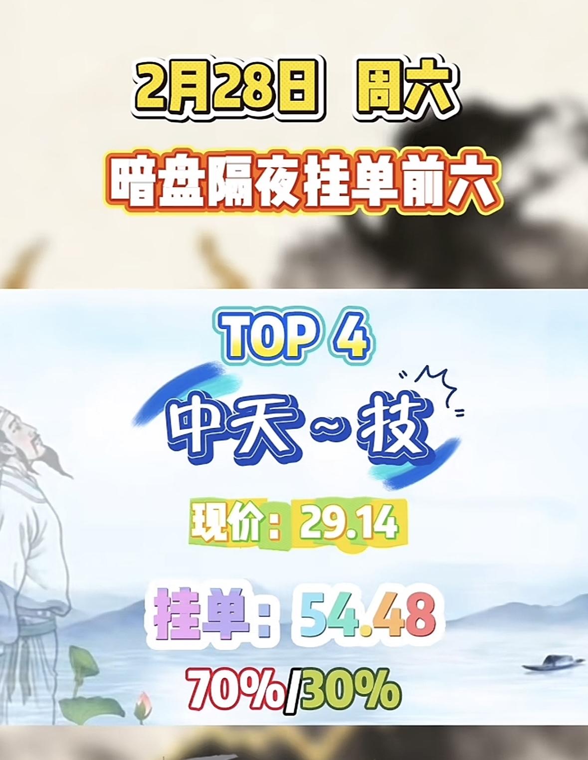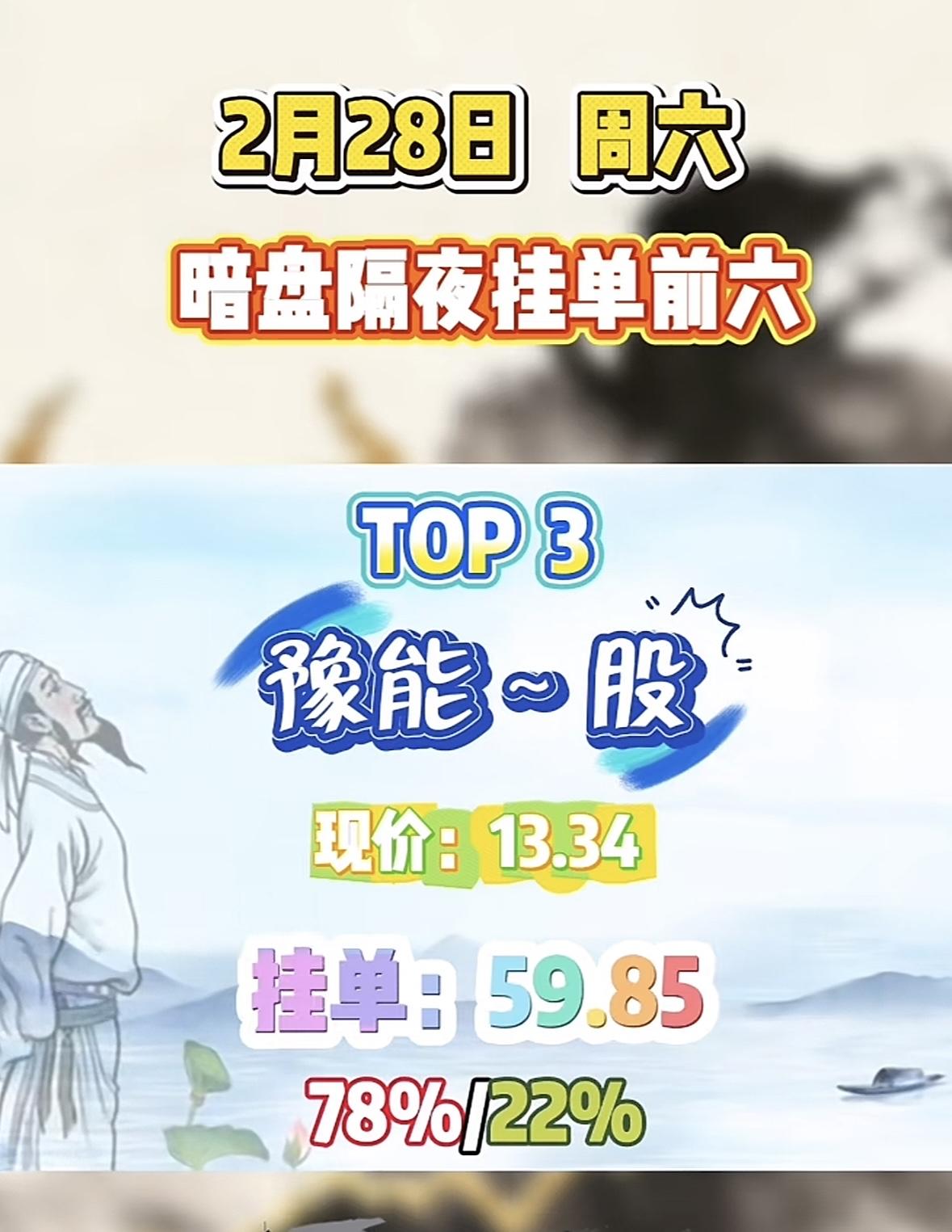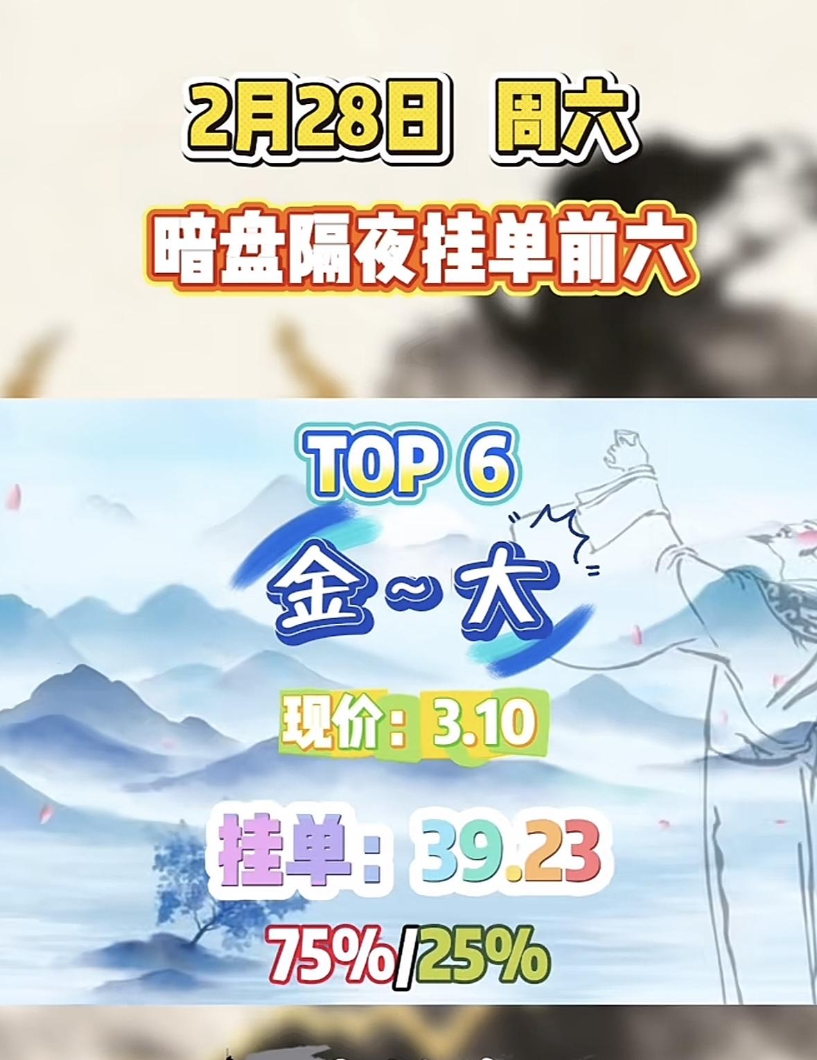 2月28日暗盘隔夜挂单前六,金大现价3.10,挂单39.23,75%/25%