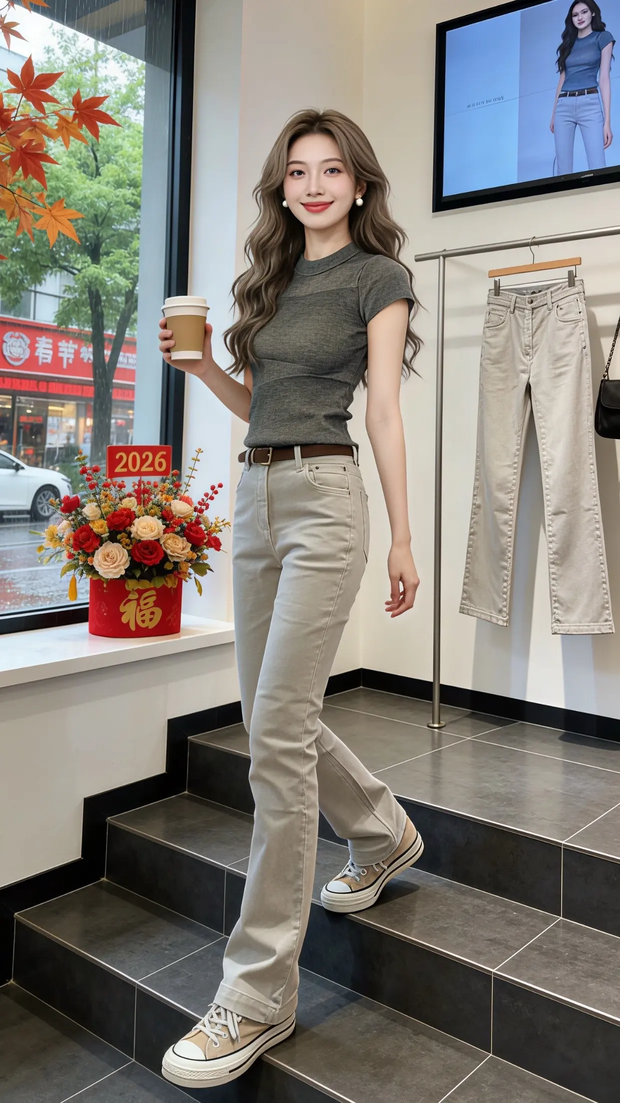 秋日穿搭指南:粉色毛衣+米色牛仔裤,温柔又时尚!🍂💕