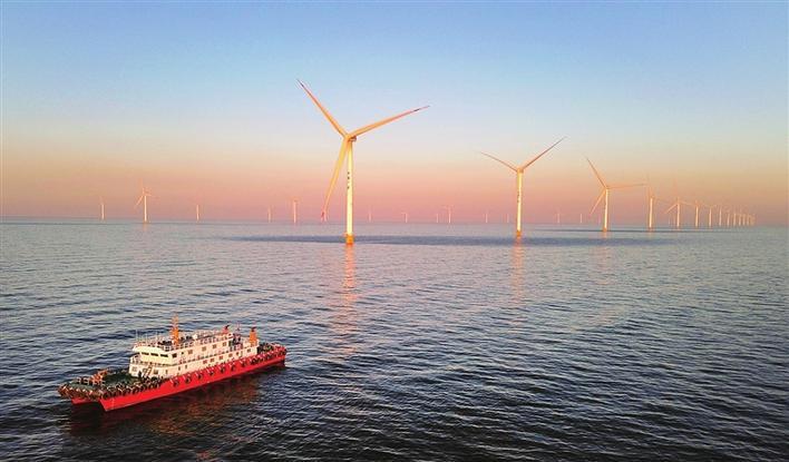 位于山东省莱州市海域的海上风电项目新华社记者徐速绘摄