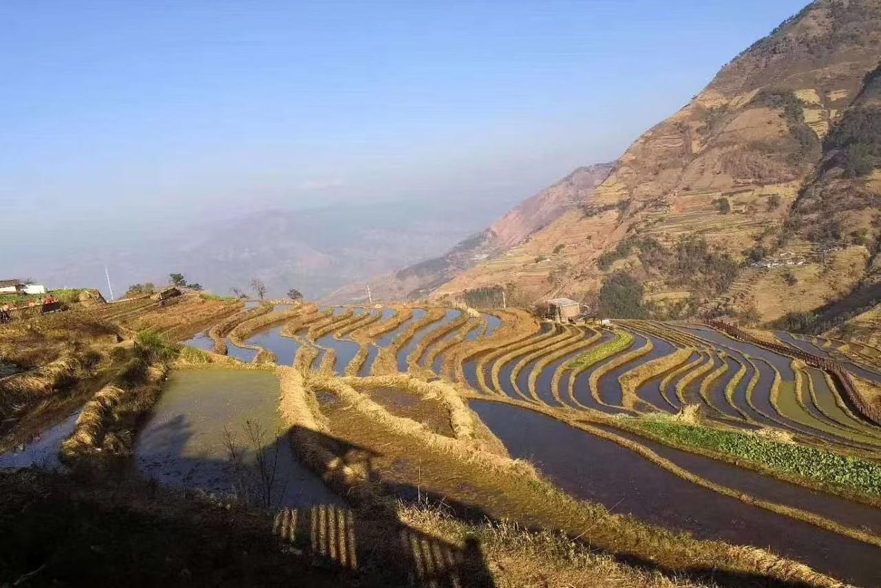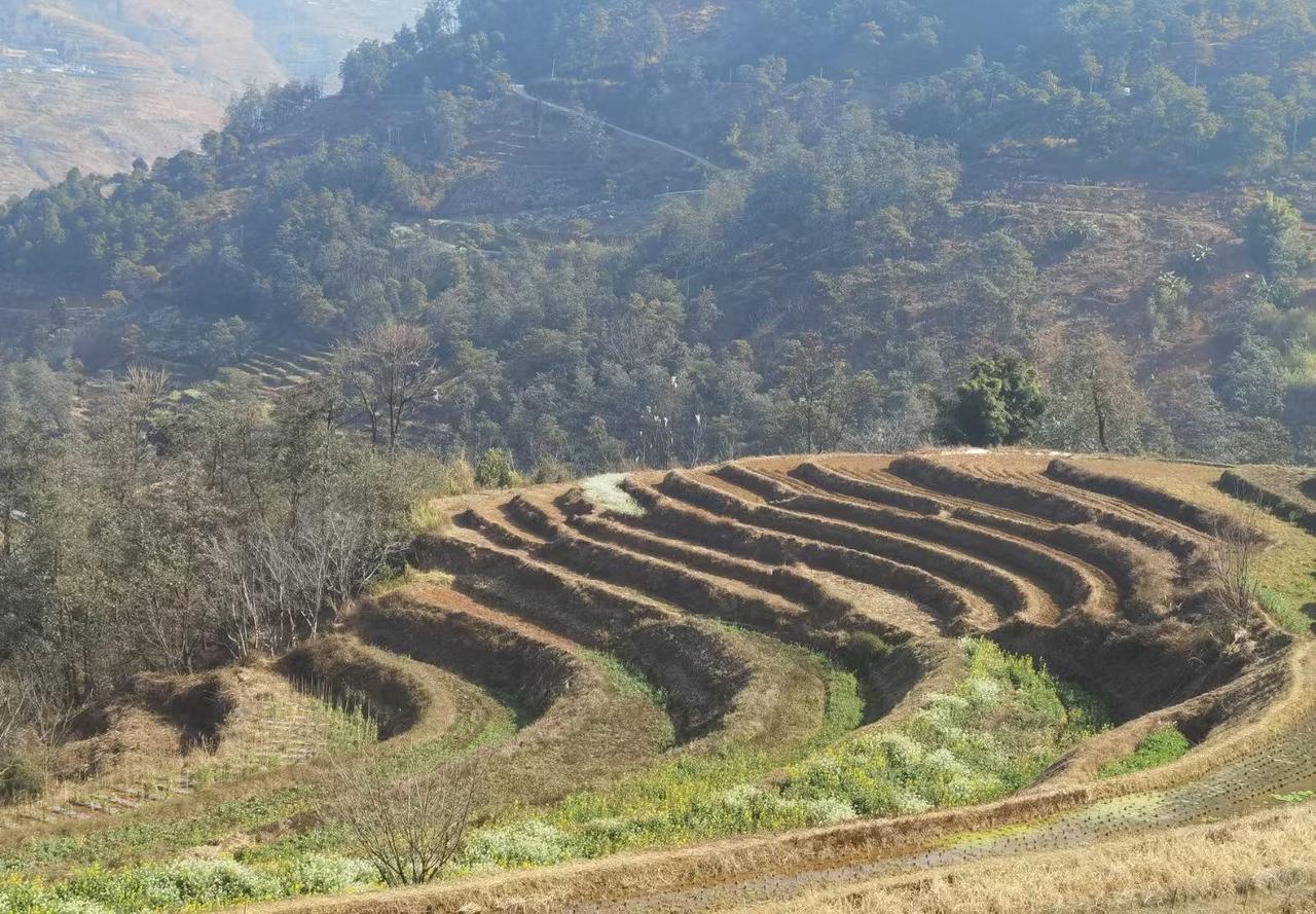四川米易傈僳梯田,是国家4A级旅游景区,它是镶嵌在攀枝花龙肘山脚下农耕文明的瑰宝,其壮美景观与深厚文化底蕴令人赞叹! 登上山巅,海拔有2000多米,俯瞰片片梯田的线条,宛如大地指纹般蜿蜒而上,行云流水一般婉约曼妙,潇洒飘逸。 我感叹:勤劳智慧的傈僳同胞世代耕耘,将荒瘠山坡雕刻成层叠叠着的梯田,好似一幅世外桃源景色。当山风吹拂纵横交错的梯田,低声吟唱着田园牧歌,让人心旷神怡。