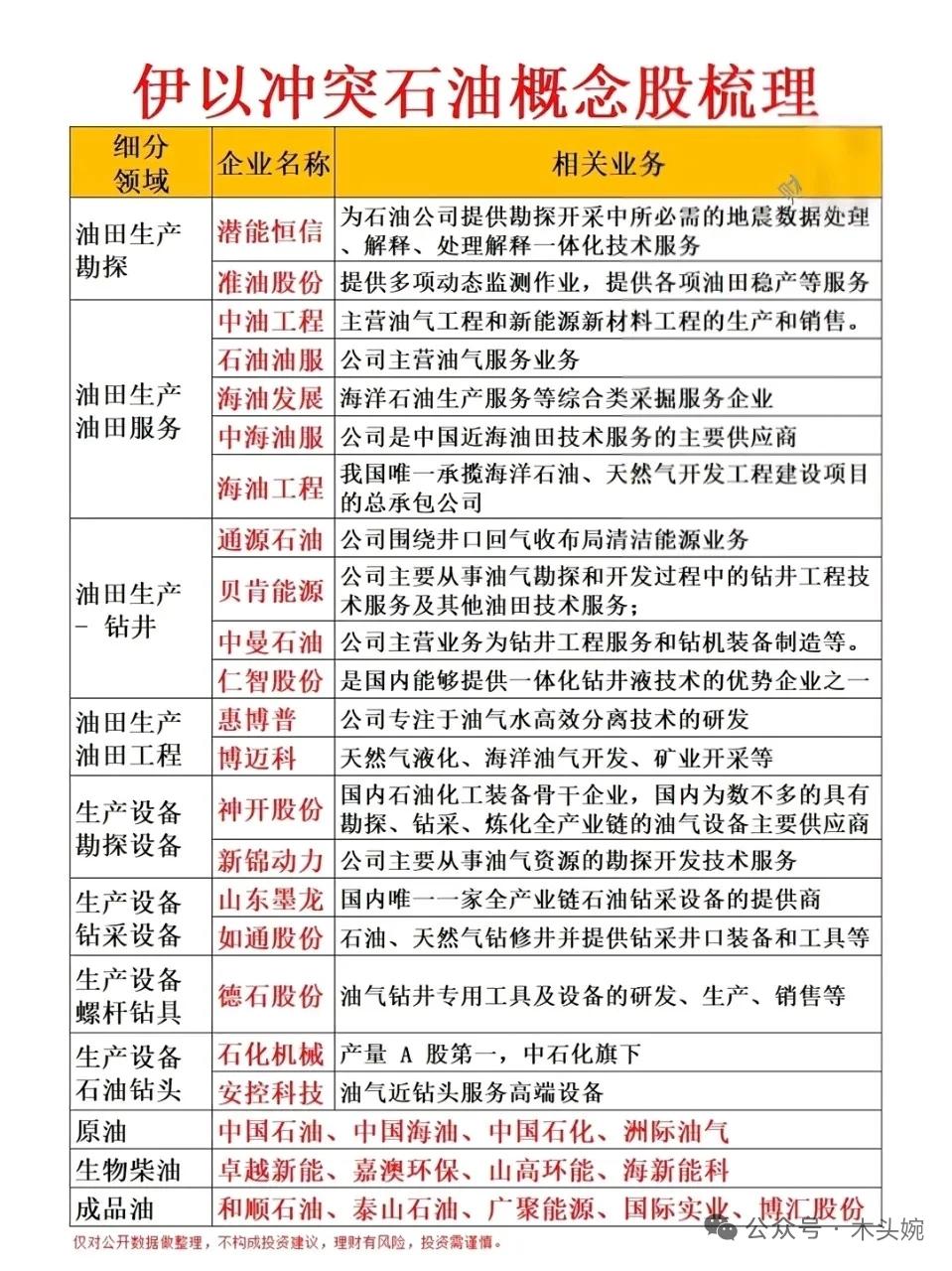 突发!中东局势紧绷,油气资源概念股人气飙升、集体异动,行业核心受益名单速览。 中东局势持续紧张,伊以冲突引发市场对能源、资源供应链的重新审视,相关投资主线也随之浮现。中东是全球油气核心产区,冲突升级推升国际油价,直接利好国内油气开采企业的业绩估值。油田勘探开发的全链条企业迎来关注目光。产业链龙头代表:准油股份、中国海油等等。 资源化工端,伊朗是全球重要的甲醇生产及出口大国,若中东局势动荡导致出口受阻,国际甲醇供给将出现缺口,进而推涨价格。其局势波动引发甲醇、碳酸锶、澳素等品类的供需预期调整。行业龙头代表:宝丰能源、金牛化工等等。 市场对供应链安全的担忧,持续推动油气、资源化工板块的情绪升温,相关概念股的投资逻辑也随之强化。理财有风险入市需谨慎!