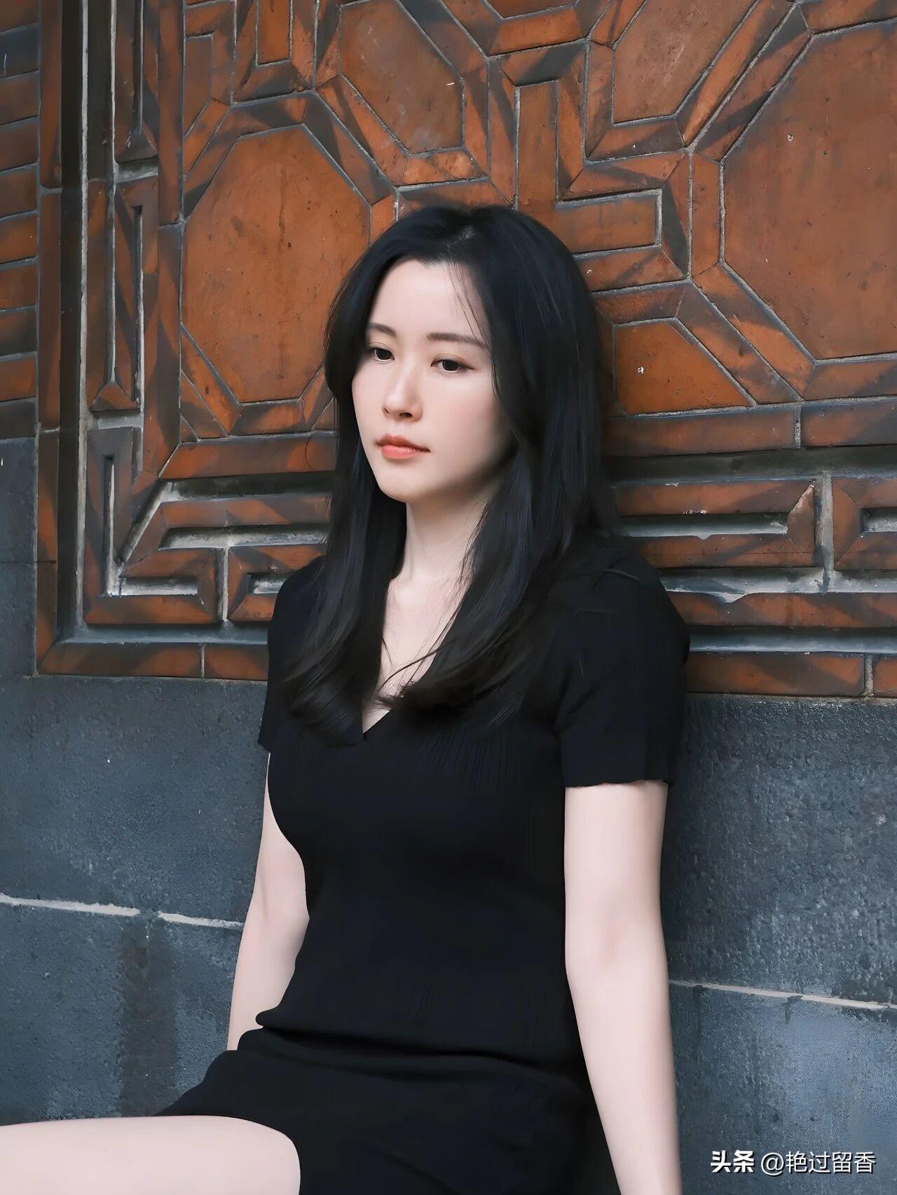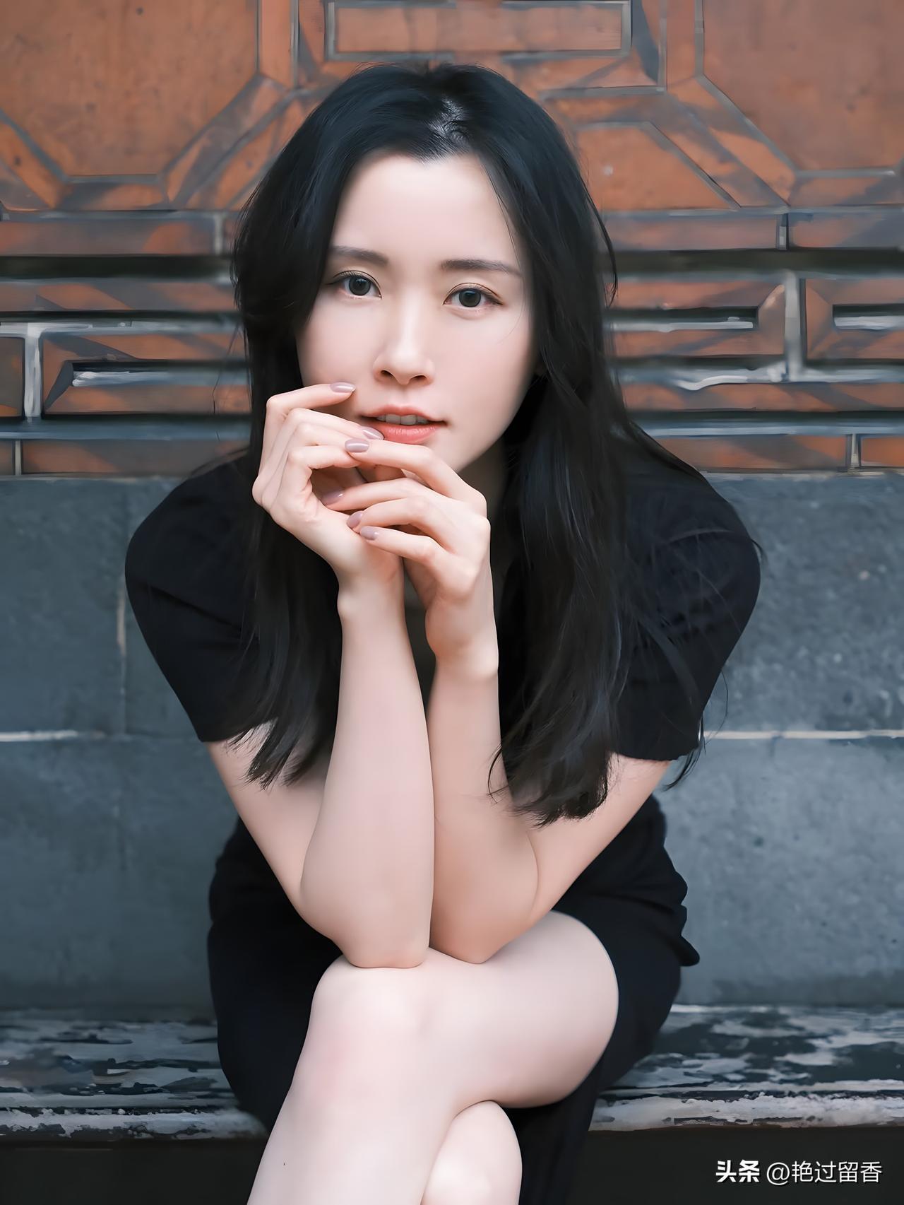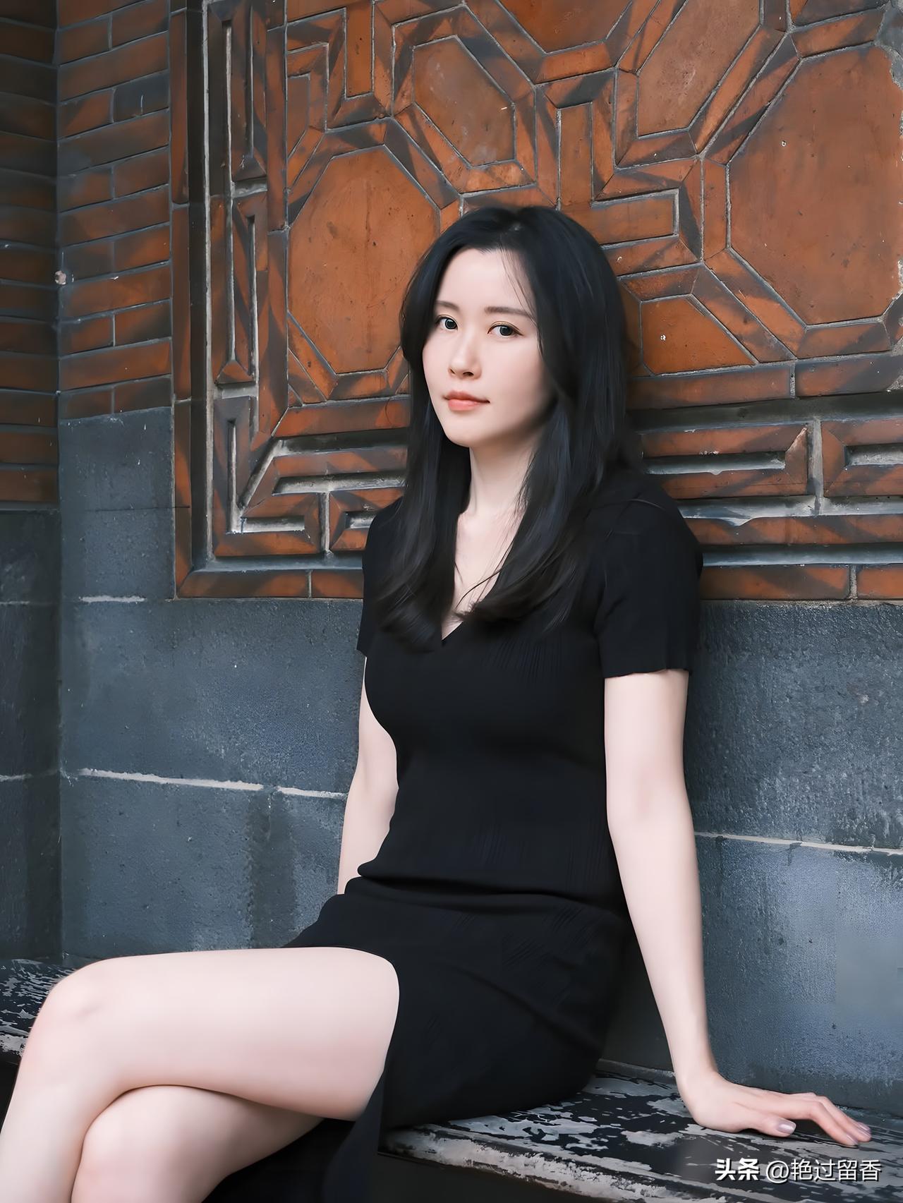 优雅黑裙,静坐古风长凳,岁月静好。时尚穿搭,今天穿什么?