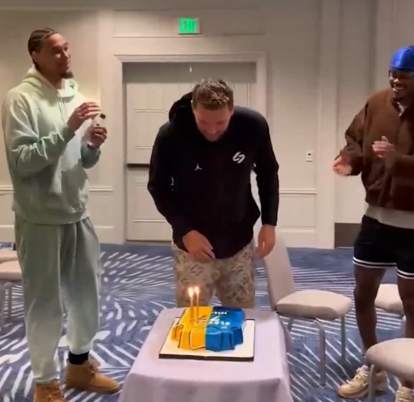赛前,湖人全队为卢克-东契奇庆祝生日,并送上生日蛋糕。
