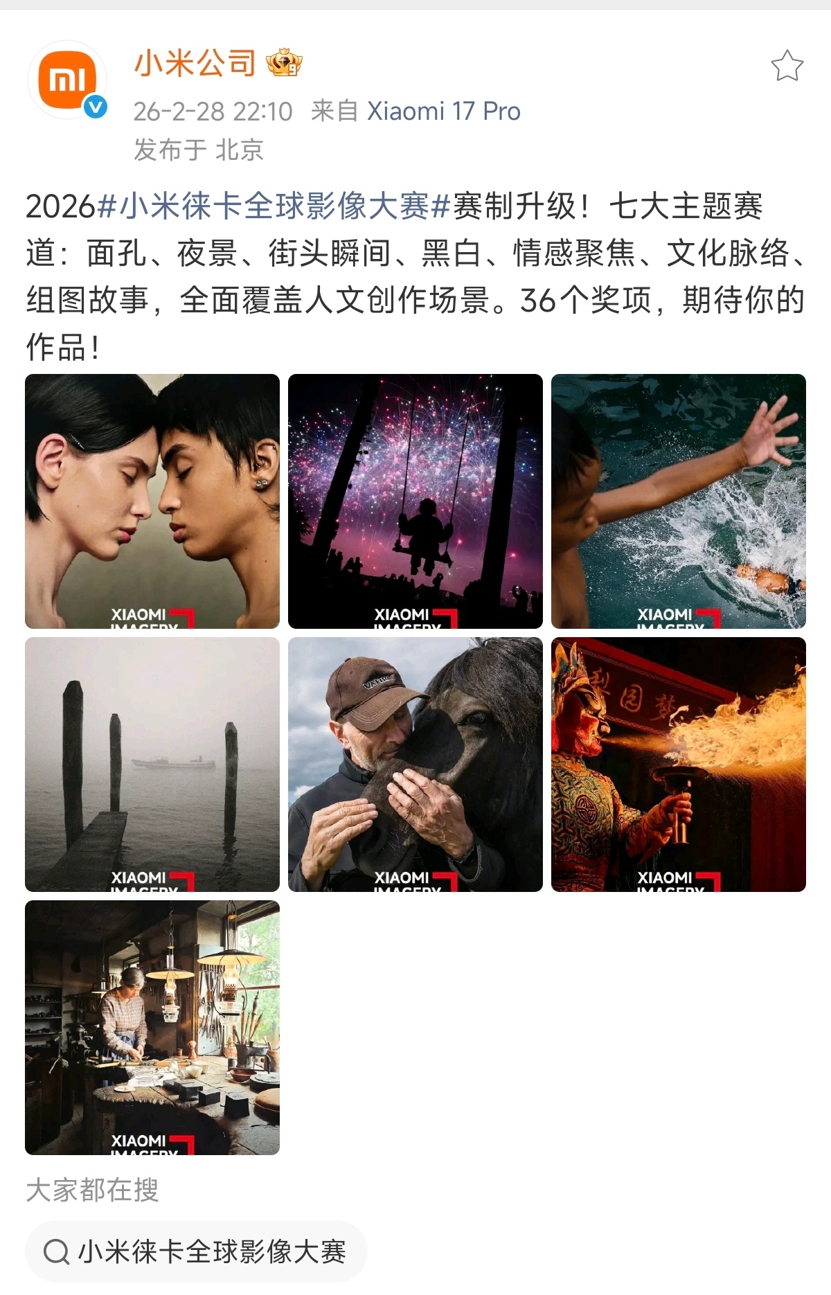 今年升级为全球性的比赛之后,比赛必然会更卷,但同样的,我们也能看到来自世界各地更多、更优秀的作品,通过这些作品,我们能了解更多的国家、更多文化、更多习俗、更多的人,以及更多精彩瞬间、更多感动和更多故事。