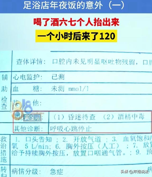 浙江杭州,足浴店员工年夜饭上,38岁男子肖某酒精中毒没了意识,同事没及时送医,反而抬回店里包厢,一个多小时后才打120。肖某抢救7天还是走了,留下老父母和15岁儿子。家属找店方索赔253万,店方只愿出二十多万,双方没谈拢,肖某家人直接住进足浴店大堂。 肖某才38岁,上有老下有小。 家里两个老人都60多了,身体不算好,常年需要人照看。 还有个15岁的儿子,正上初中,正是花钱和需要陪伴的时候,肖某是家里唯一的顶梁柱,全家的开销,全靠他在足浴店打工挣来。 2月16号那天,是足浴店组织员工吃年夜饭的日子,大家忙了一整年,好不容易聚在一起,图个热闹喜庆。 肖某平时就爱喝两口,那天高兴,同事们又轮番劝酒,一来二去,就喝多了。 一开始还能说笑,后来直接倒在酒桌上,没了意识,任凭怎么叫都没反应。 在场的同事都慌了神,没人敢做主。 有人说要送医,有人说再等等,说不定缓一缓就醒了。 最后没人敢担责任,一群人手忙脚乱,把肖某抬回了足浴店的包厢,就放在沙发上,没人守着,也没人再提送医的事。 这一等,就等了一个多小时。 直到有人觉得不对劲,伸手摸了摸肖某的脸,冰凉冰凉的,呼吸也特别微弱,才赶紧打了120急救电话。 救护车赶到的时候,肖某已经陷入深度昏迷,脸色惨白,连脉搏都快摸不到了。 医护人员赶紧抢救,一路拉往医院。 家属接到电话的时候,整个人都懵了,老母亲当场就哭晕过去,醒来第一句话就是,我的儿啊,你可不能有事。 医院下了病危通知书,说肖某是急性酒精中毒,错过了最佳抢救时间,情况很不乐观。 家属砸锅卖铁,凑钱给肖某治病。 整整7天,每天都在重症监护室,花了20多万,耗尽了家里所有的积蓄,还借了一大笔外债。 可老天爷还是没留情,7天后,医生宣布,肖某抢救无效离世。 好好的一个人,过年吃顿年夜饭,就这么没了。 老父母白发人送黑发人,15岁的儿子没了爸爸,往后的日子,真的不敢想。 家属找到足浴店,要求赔偿,算上医疗费、丧葬费、抚养费、精神损失费,一共索赔253万。 可足浴店的态度很冷淡,说肖某是自己喝多的,跟店里没关系,最多只能出二十多万,算是人道主义补偿。 双方谈了好几次,店方态度强硬,就是不肯多赔一分钱。 家属走投无路,实在没办法,只能抱着被子,住进了足浴店的大堂。 白天晚上都守在那里,只求店方能给一个合理的说法,能多赔一点,让老人和孩子能活下去。 足浴店正常营业受到影响,就报警了。 民警来了好几次,调解了好几次,还是没结果。 有人说,肖某自己贪杯,喝多了怪不了别人。 可是,要是同事们当时不犹豫,及时送医,要是店方有人出来做主,肖某是不是就不会走? 最让人想不通的是,明明人已经没了意识,明显不对劲,为什么不第一时间打120,反而要抬回包厢等? 这一个多小时,就是肖某的救命时间啊。 这事,足浴店和同事到底有没有责任?肖某的离世,该谁来负责?索赔253万合理吗?店方只出二十多万,到底合不合法? 据《民法典》第1165条,行为人因过错侵害他人民事权益造成损害的,应当承担侵权责任。 这就是说,只要有过错,造成了损害,就得负责。 肖某是足浴店员工,年夜饭是店方组织的,属于工作相关的集体活动,店方对员工的人身安全有安全保障义务。 就像最高法发布的案例里说的,经营者对消费者或员工,有法定的安全保障义务,未尽到义务造成损害,就要担责。 肖某醉酒后失去意识,店方没有及时组织送医,反而让同事把人抬回包厢,拖延了一个多小时才打120,明显没有尽到安全保障义务,存在过错,必须承担主要赔偿责任。 根据《民法典》的规定,共同饮酒人之间有相互关照、提醒、护送的义务。 同事们明知肖某喝醉酒失去意识,没有及时送医,反而拖延时间,也存在过错,要承担次要赔偿责任。 肖某自己也有一定责任,他作为成年人,应该知道自己的酒量,过量饮酒导致中毒,自身也存在过错,会适当减轻店方和同事的赔偿责任,但不会免除他们的责任。 索赔253万,是家属根据实际损失计算的,包括医疗费、丧葬费、被扶养人生活费等,并不是漫天要价。 店方只愿出二十多万,远远不够弥补家属的损失,于法于理都说不过去。 关键在于店方和同事是否尽到了安全保障和救助义务,以及赔偿金额的多少。 肖某的死,是多方过错导致的,店方的拖延和同事的不作为,是导致悲剧发生的重要原因。 目前,双方还在僵持中,原文没有明确的判决结果。 一顿年夜饭,毁了一个家庭,老父母没人养,孩子没人管,想想都难受。 大家觉得足浴店该赔多少钱才合理?同事们有没有责任?一起来说说你的看法。