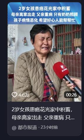 这就是命!”河南南阳,一2岁半女孩,9个月大的时候,被确诊盆腔癌,肿瘤压迫尿道,导致孩子不能自主排尿,爸爸精神有问题,妈妈绝望的离家出走,奶奶一把年纪照顾孙女,崩溃大哭:俺儿重病,儿媳妇跑了,啥也没有了,俺打算没钱就不治了,治不起了! 一双布满老茧和青筋的手,正哆哆嗦嗦地捏着冰凉的导尿管,一寸一寸往孙女小雨身体里探。稍微偏一点,哪怕就蹭那么一下,两岁半的娃娃立马就撕心裂肺地嚎起来。 那鼓起的小肚子底下,藏着一颗硬得跟石头一样的骶尾部恶性肿瘤。把时间往回拨一年半,2024年那会儿,刚满九个月的小雨被一纸诊断书钉死在了盆腔癌的十字架上。疯长的肿块死死卡住尿道,彻底废掉了这个小肉团自己撒尿的功能。 但你以为这就完了?命运在这个农家小院里摆下的死局,哪是一个病字能说清的。灾祸跟推牌九似的,哗啦一声,把全家人站着的地儿全给掀翻了。 小雨她爹本来精神就有毛病,闺女确诊的消息一砸下来,脑子里最后那根弦直接崩了。现在整天缩在墙根底下,两只眼珠子空洞洞的,连自己穿衣服吃饭都整不明白。 那个二十来岁的年轻妈妈呢?眼睁睁瞅着家里十来万积蓄填进去,外债越垒越高,她连夜跑了。面对这个无底洞,她选了最绝的法子把所有联系方式一刀切断,人间蒸发。 你能拿道德的大棒抽她脊梁骨吗?说实话,难。《民法典》第1059条白纸黑字写着夫妻得互相扶养,可把这冷冰冰的法条甩一个精神快崩溃的年轻女人脸上,能变出救命钱来吗?变不出来。 偌大一个屋檐底下,还能喘气的大人就剩一个刚从阎王爷手里抢回半条命的老太太。去年,也就是2025年,这位61岁的老人硬扛过了人生第三次脑梗,颤颤巍巍从重症监护室爬了出来。 谁敢信?就这么一副千疮百孔的身子骨,愣是撑成了孙女头顶上唯一一把破伞。天不亮就得爬起来熬粥喂饭,整宿整宿睁着眼熬,生怕眼皮子一耷拉,死神就把床上那个小肉团给偷走了,可再硬的骨头,也扛不住兜里没钱的绞杀啊。 "俺儿重病,儿媳妇跑了,俺打算没钱就不治了。"面对镜头,老太太干瘪的嘴唇一张一合,吐出来的全是绝望。这不是冷血,这是被逼到死角后的极限算术题。后续治疗费就是个无底洞,让一个病歪歪的老太太去填,跟精卫填海有啥区别? 真正扎心的是啥?是这条求生路上那片巨大的真空地带。按理说,小雨这情况,完完全全够得上困境儿童救助的门槛。大病医疗救助的口子开在那儿,基层福利的网也早织好了,可这一家人愣是拖到山穷水尽、被人把惨状捅到网上,才在舆论场里溅起几朵水花。 直到今年这阵子,消息彻底炸开了锅,天南海北的善心才迟迟灌进这个摇摇欲坠的家。一位常年抱病的77岁老太太,硬是从牙缝里抠出两千块汇了过去。电话接通那一刻,两个苦命女人隔着屏幕哭成了泪人。 各地的年轻宝妈们也坐不住了,打包好厚衣服,塞上零钱,一个电话一个电话地拽着奶奶,生怕她一头扎进黑水里不回头了。 民间这点萤火虫的光确实暖人心窝子,但说句扎心的这出悲剧压根不该演到这么惨烈。早在怀孕那会儿,哪怕按时做个四维排畸,这颗要命的瘤子没准早就现原形了。 退一万步讲,就算躲不过这一劫,要是基层那张社会雷达能转得再快点,救助的温度能顺着村里的土路主动贴上去,老人家也不至于对着空气喊出"这就是命"的悲腔。 两岁半的娃娃哪懂得掂量命运有多沉?她脑子里就只有钻心的疼,还有奶奶怀里那点仅存的安全感。 这个破碎的家真正缺的,从来都不是应激式的施舍,而是一张结结实实、能兜住底的安全网。