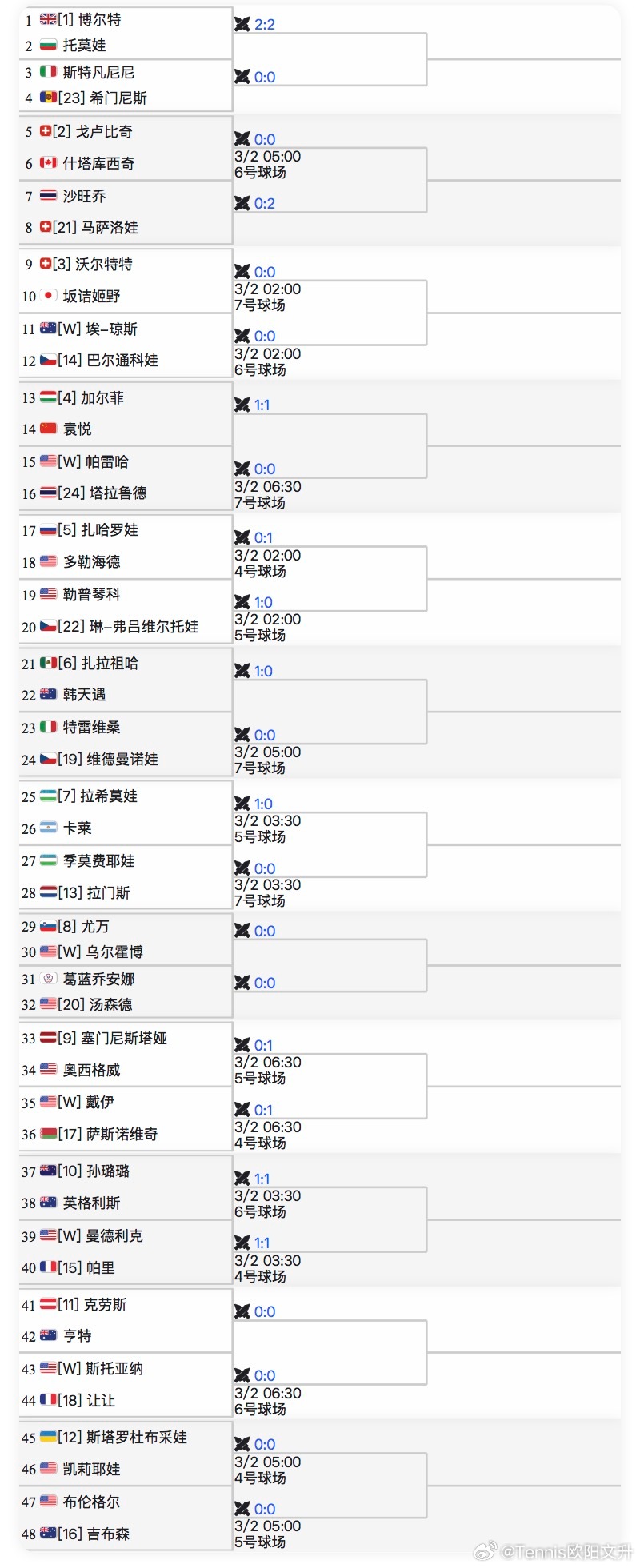 🔵WTA1000印第安维尔斯女单资格赛签表🇨🇳袁悦vs【4】🇭🇺加尔菲