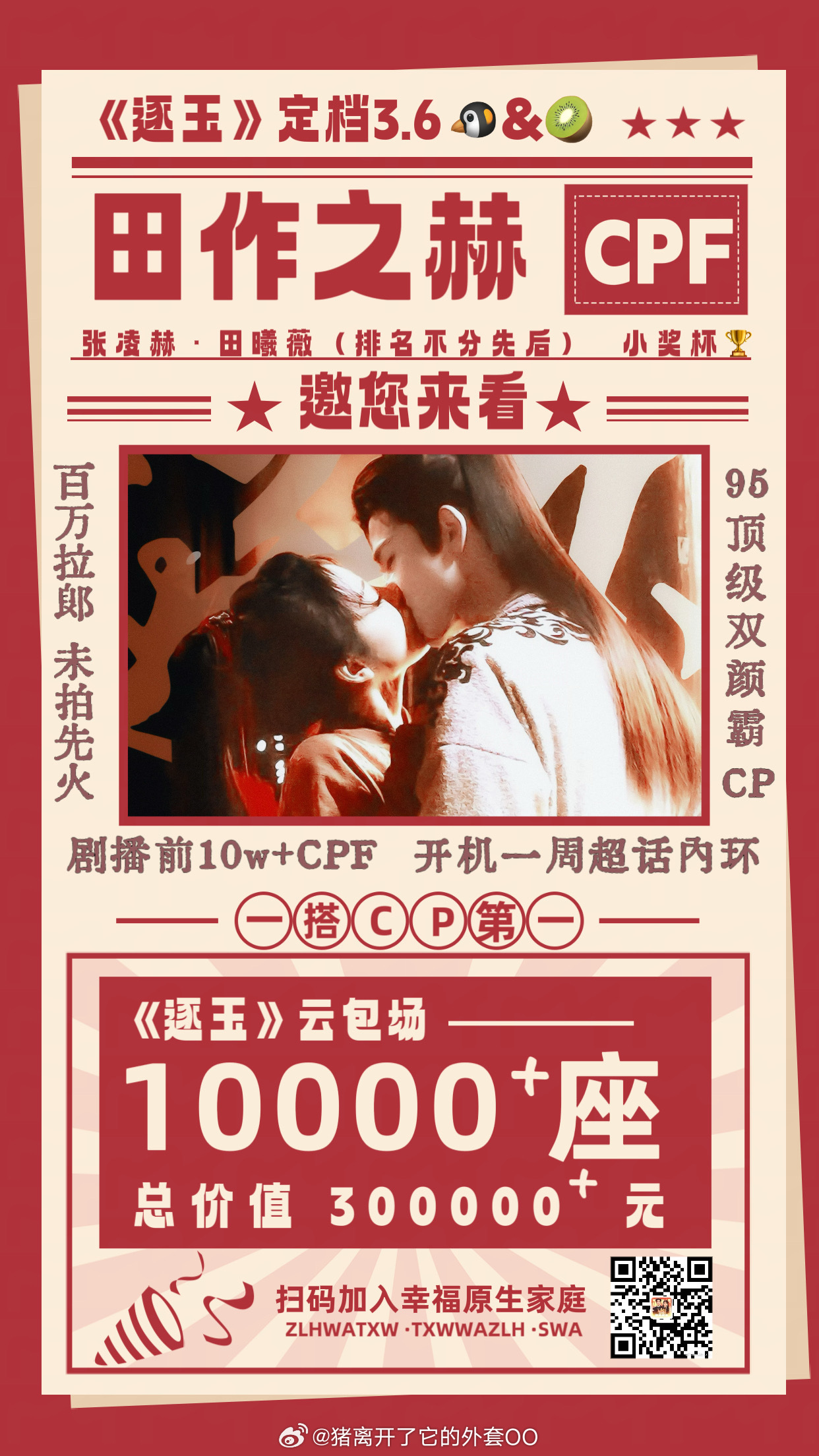 张凌赫、田曦薇cpf《逐玉》还未播,云包场都10000+座还是一搭未播的cp,竟