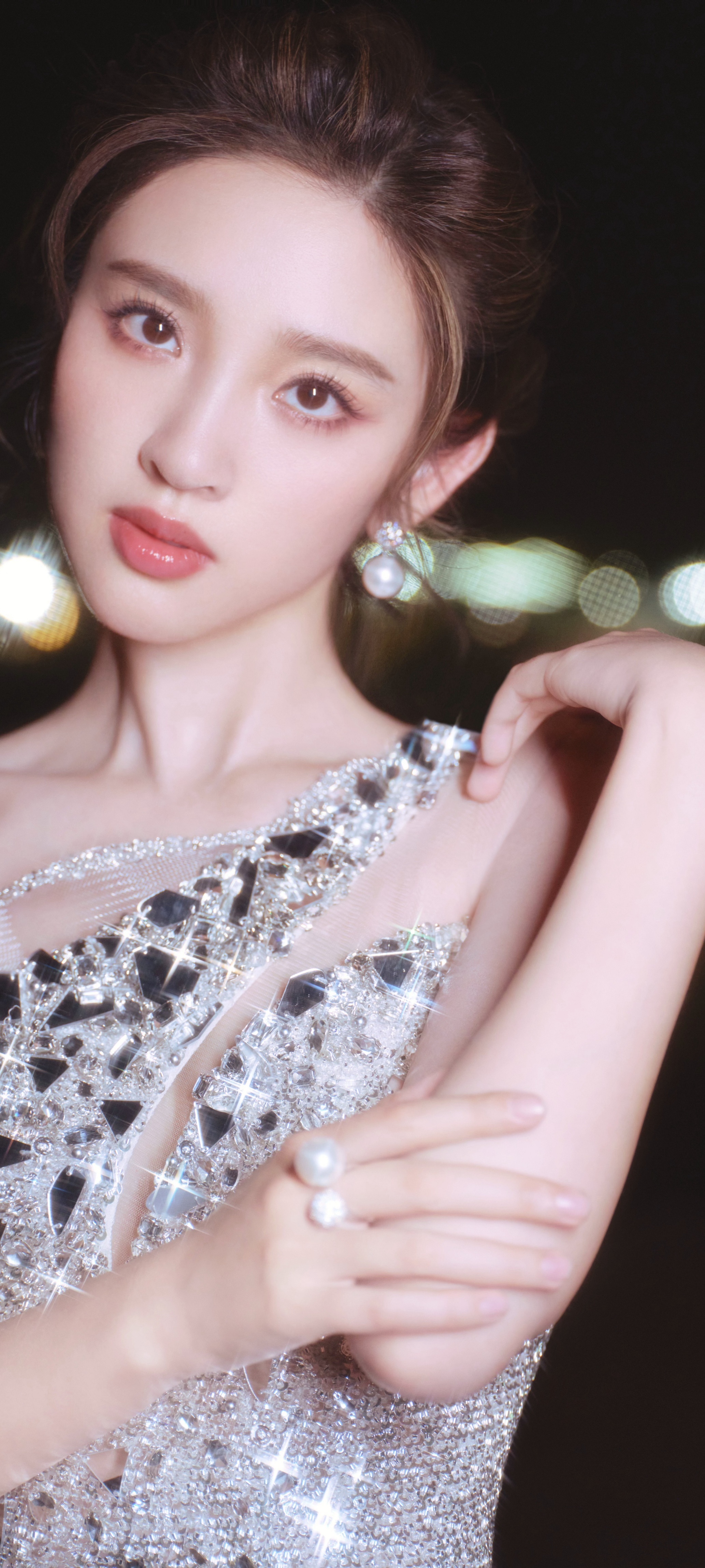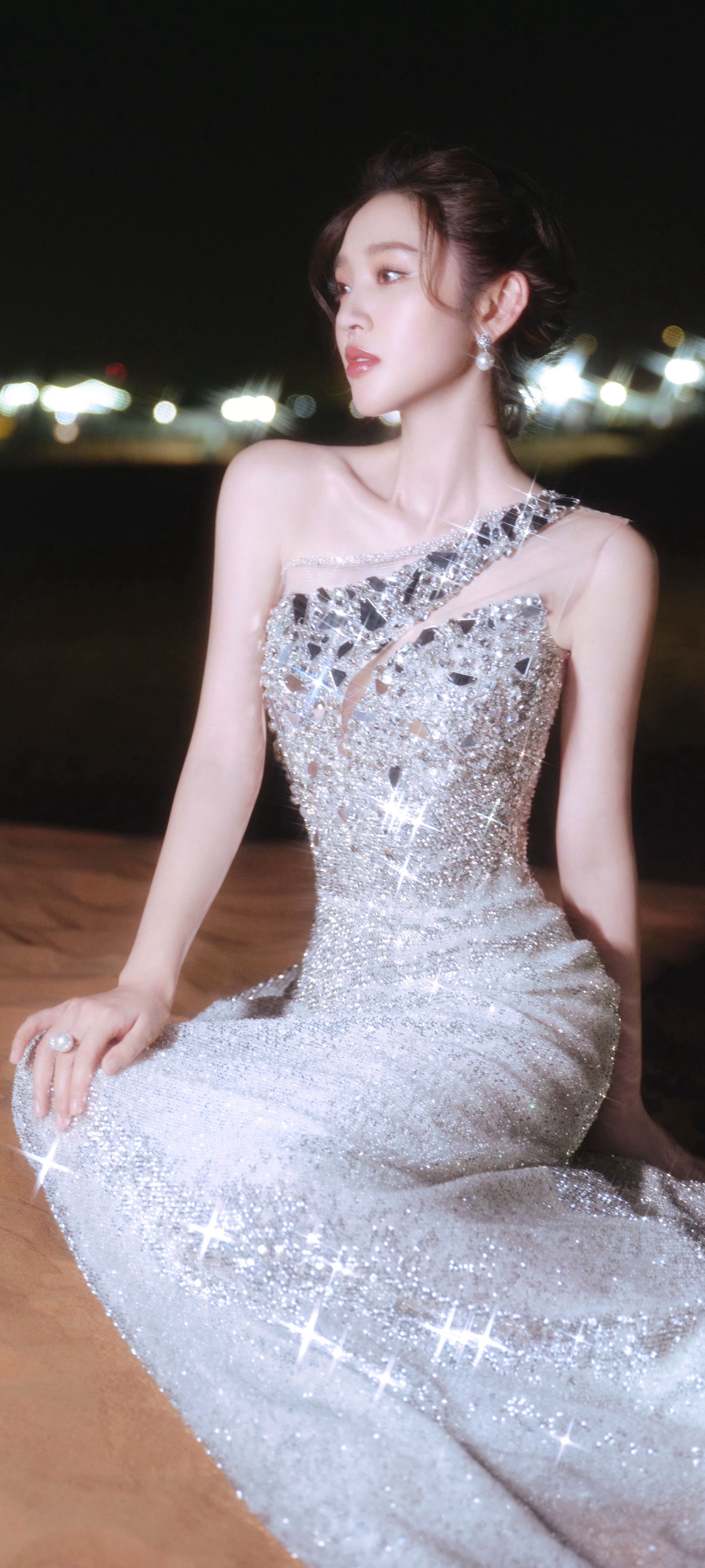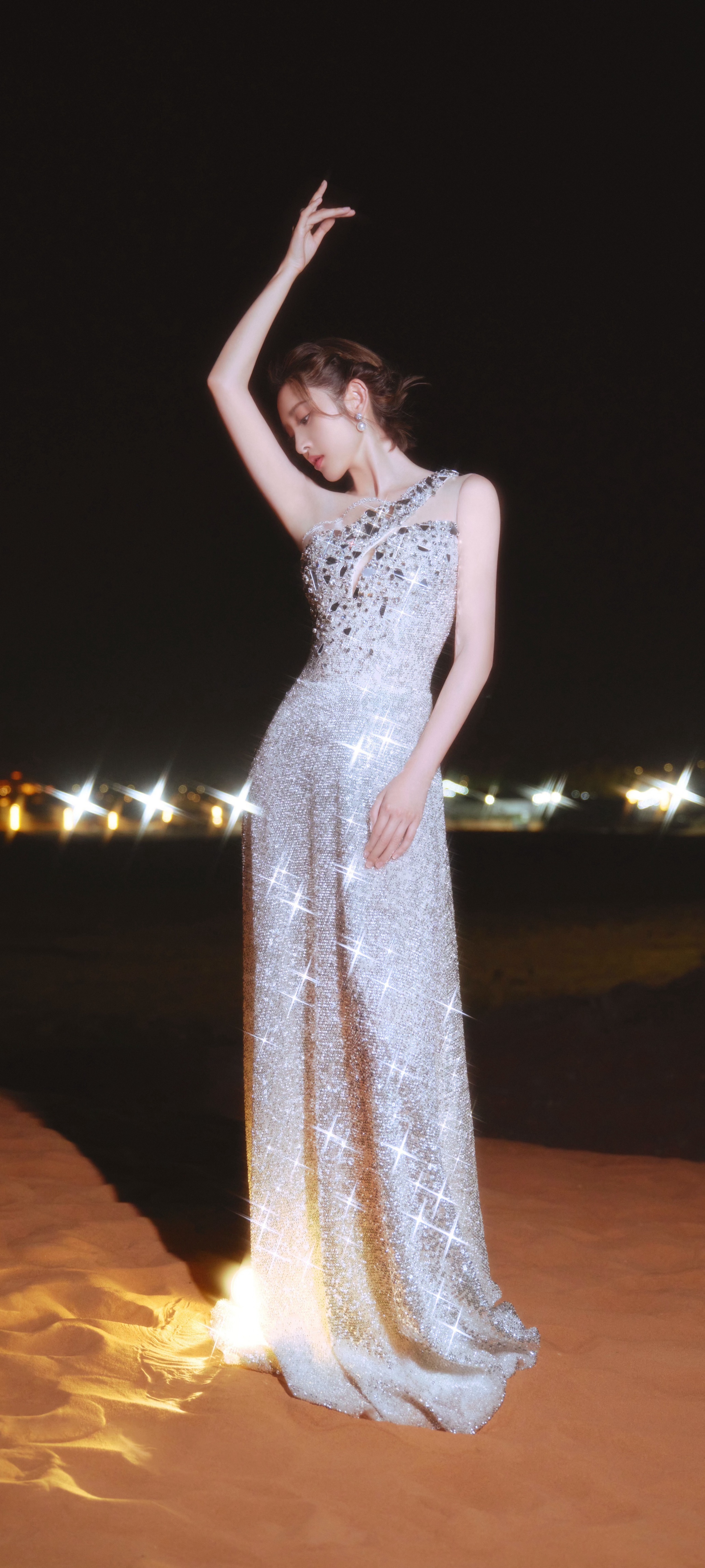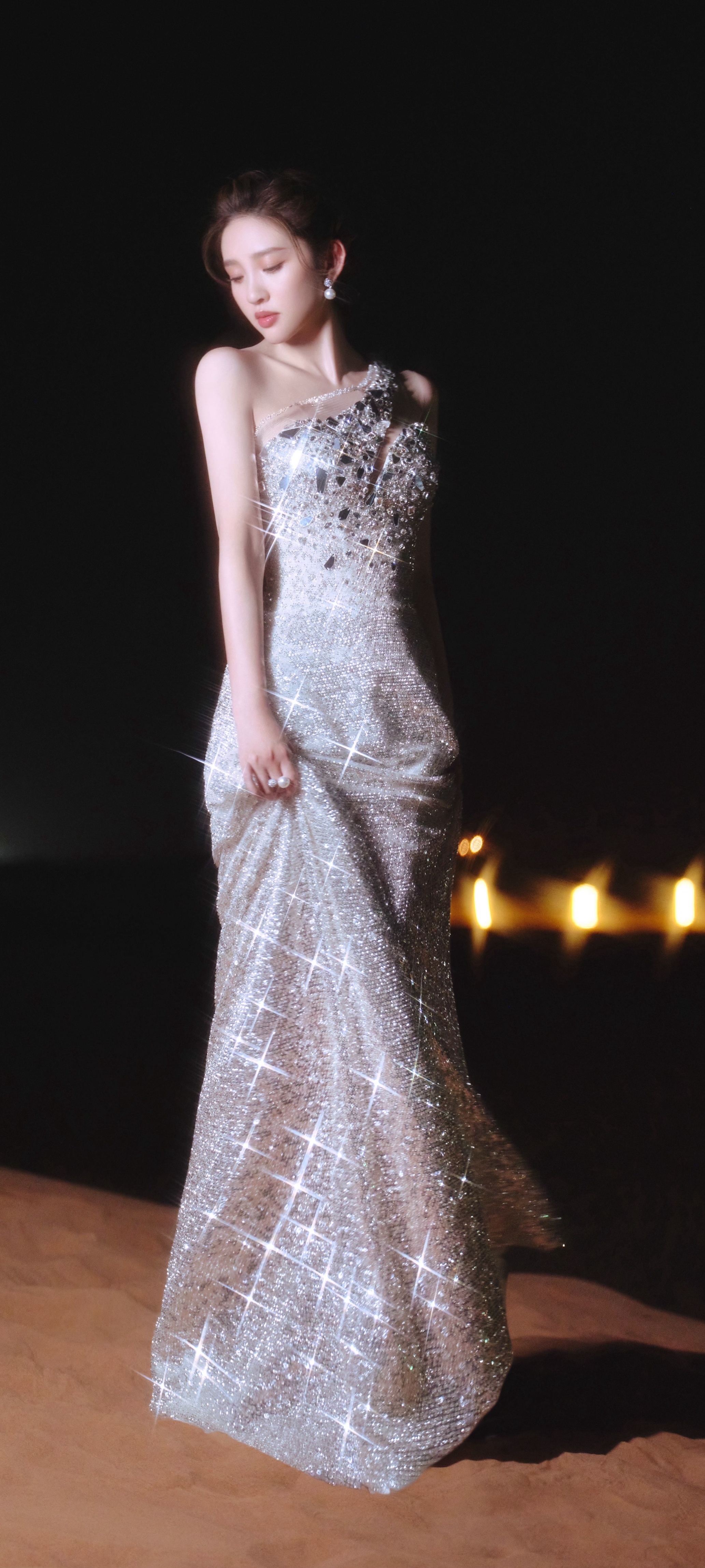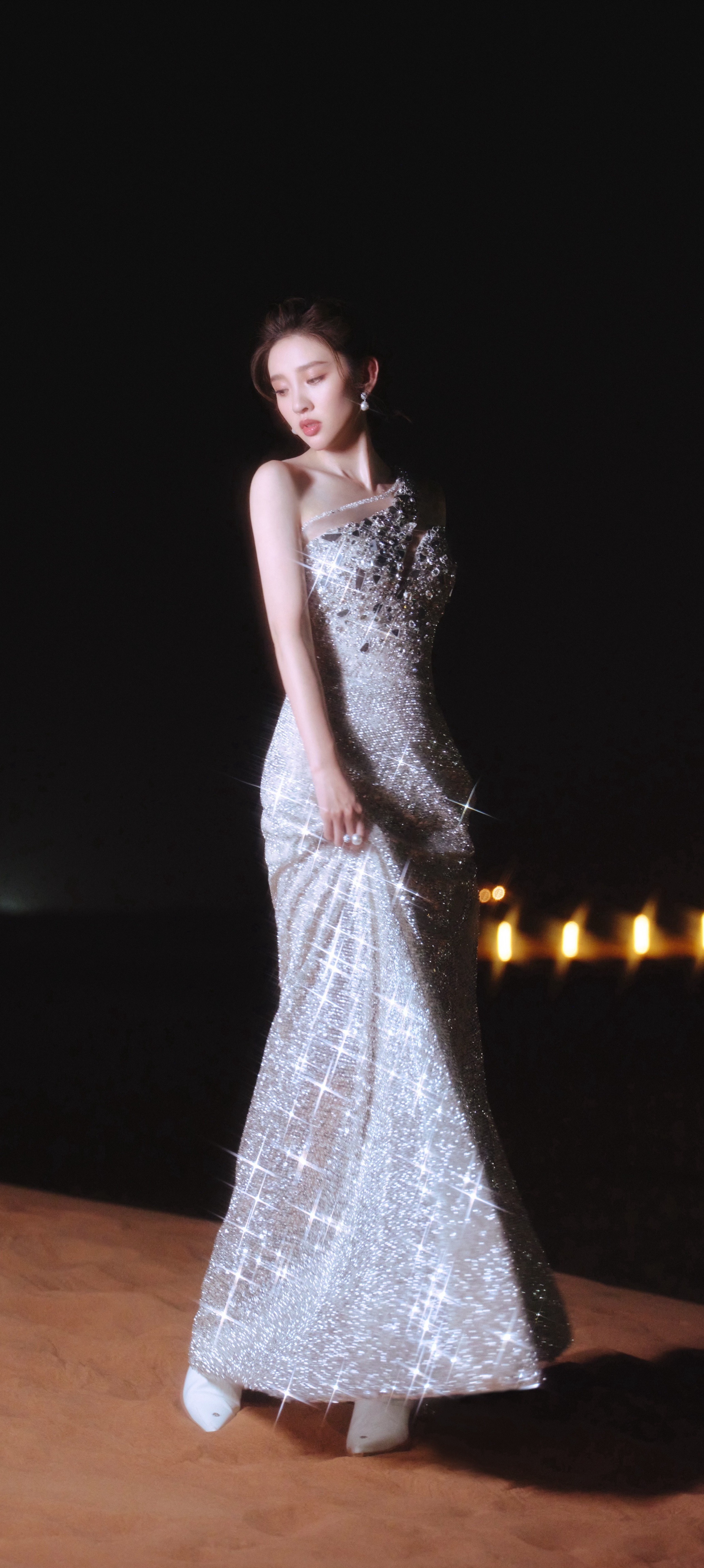 唐艺昕穿搭壁纸,银妆夏夜,闪闪清冷之美。唐艺昕