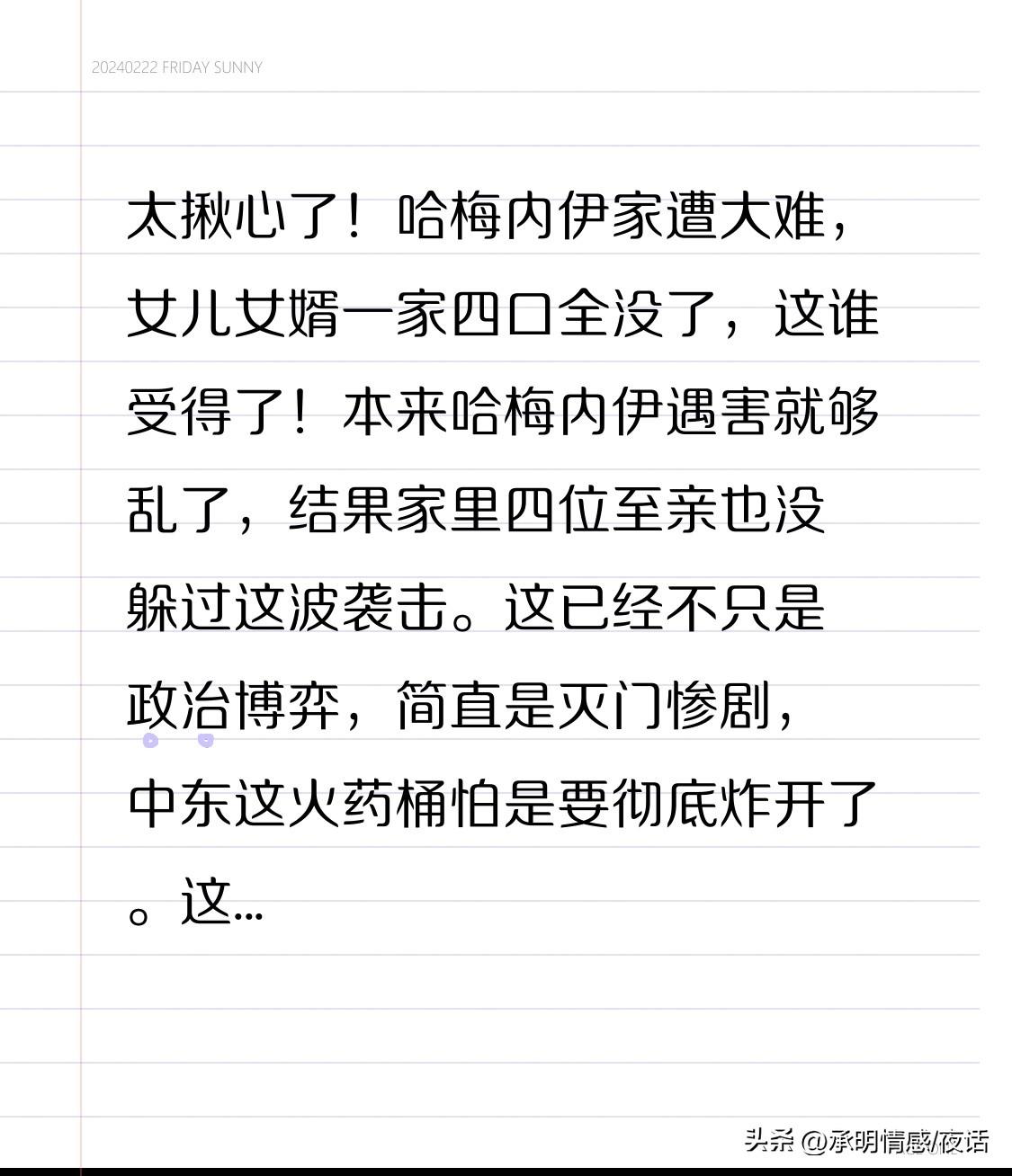 太揪心了!哈梅内伊家遭大难,女儿女婿一家四口全没了,这谁受得了! 本来哈梅内伊遇害就够乱了,结果家里四位至亲也没躲过这波袭击。这已经不只是政治博弈,简直是灭门惨剧,中东这火药桶怕是要彻底炸开了。 这事儿你怎么看?评论区咱们聊聊,觉得局势危险的赶紧点赞收藏!