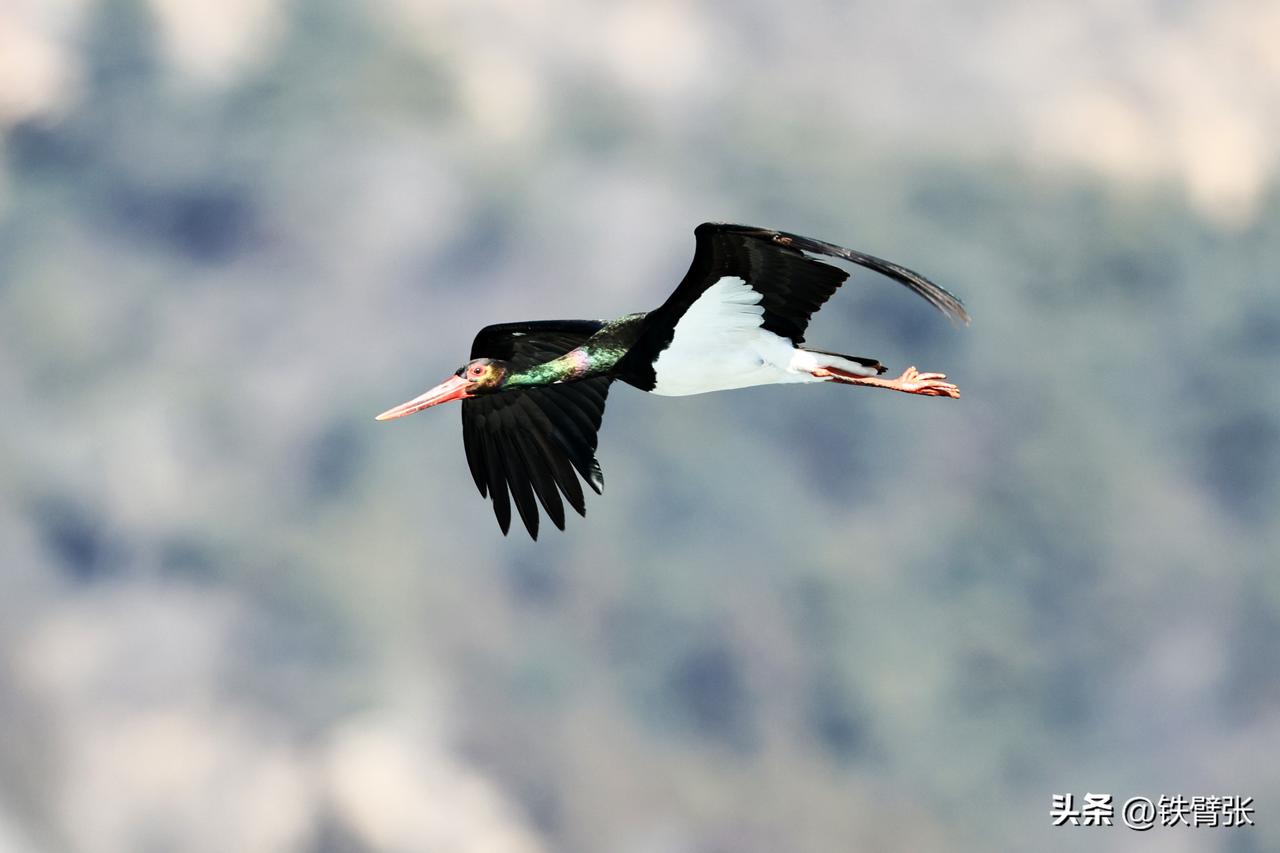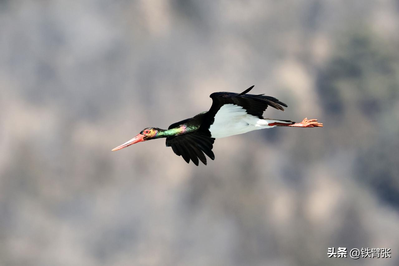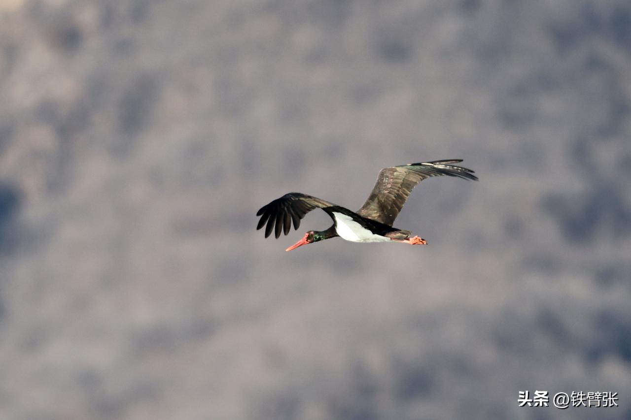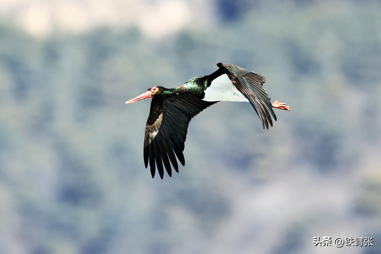 国家一级保护动物黒鹳飞过西峪大桥