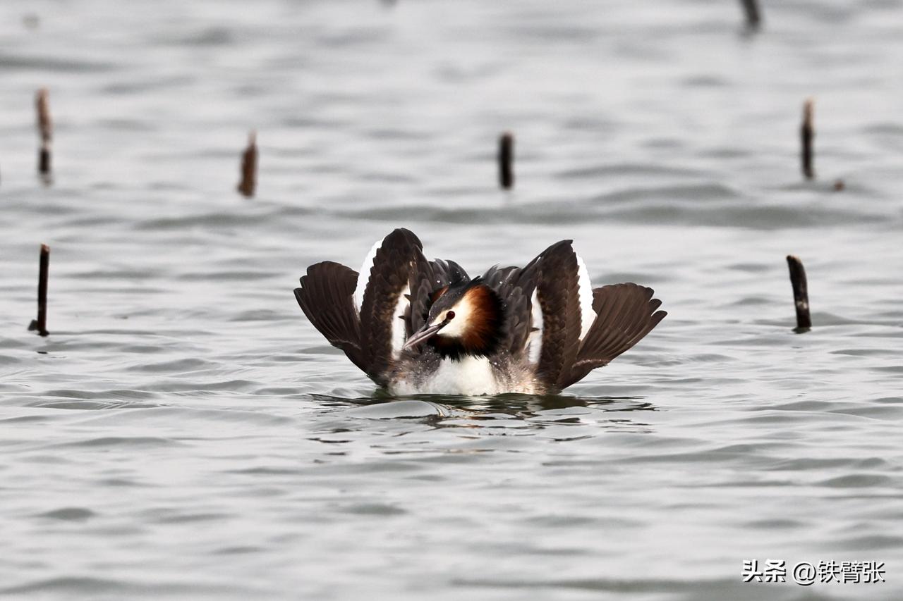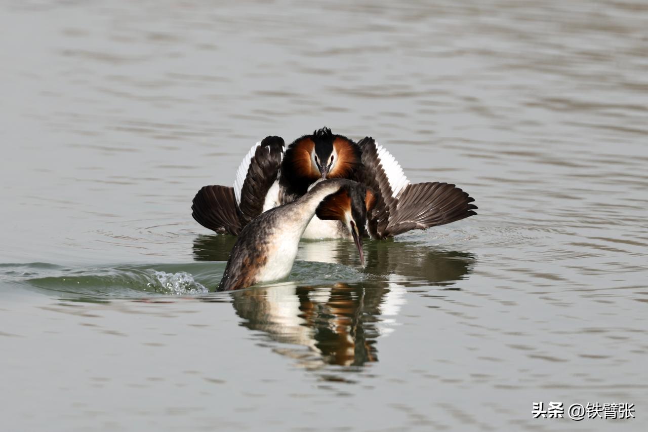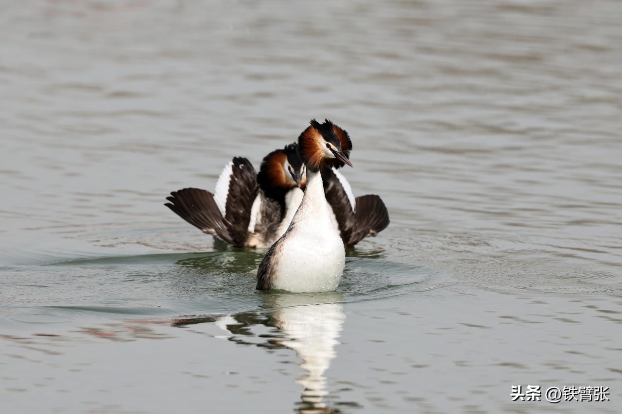 热恋中的凤头鸊鷉凤头显现、翅膀开花!