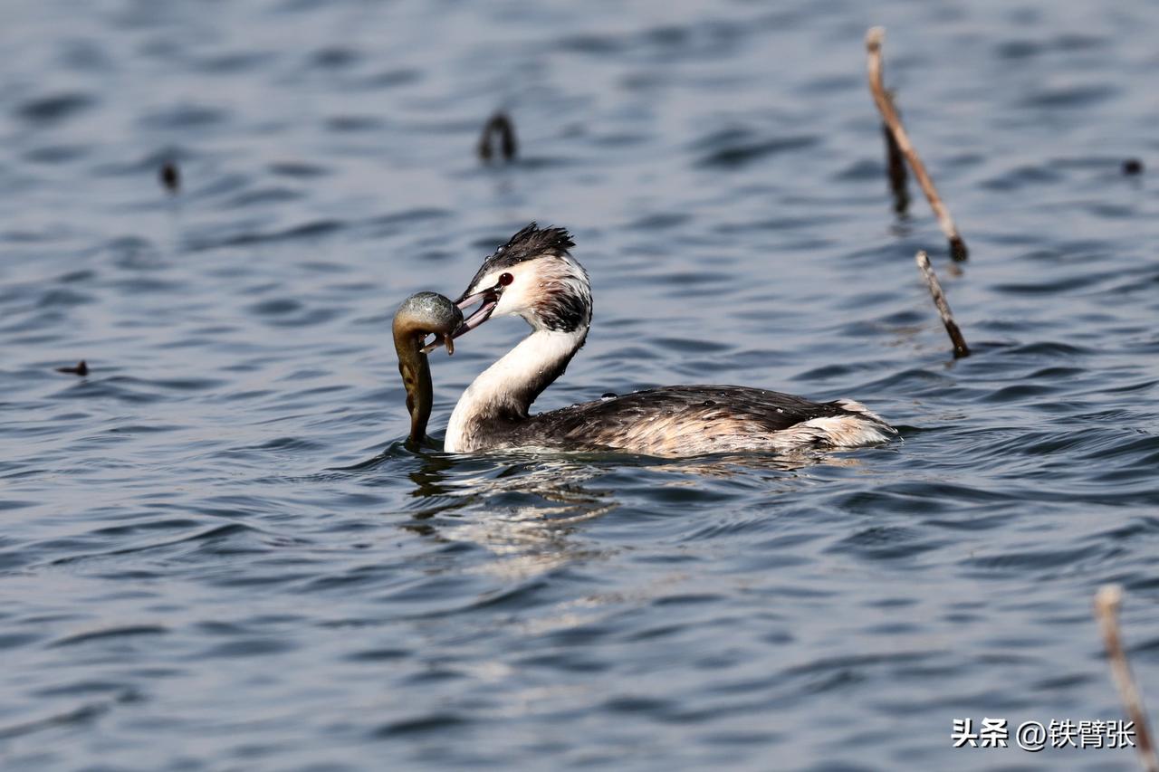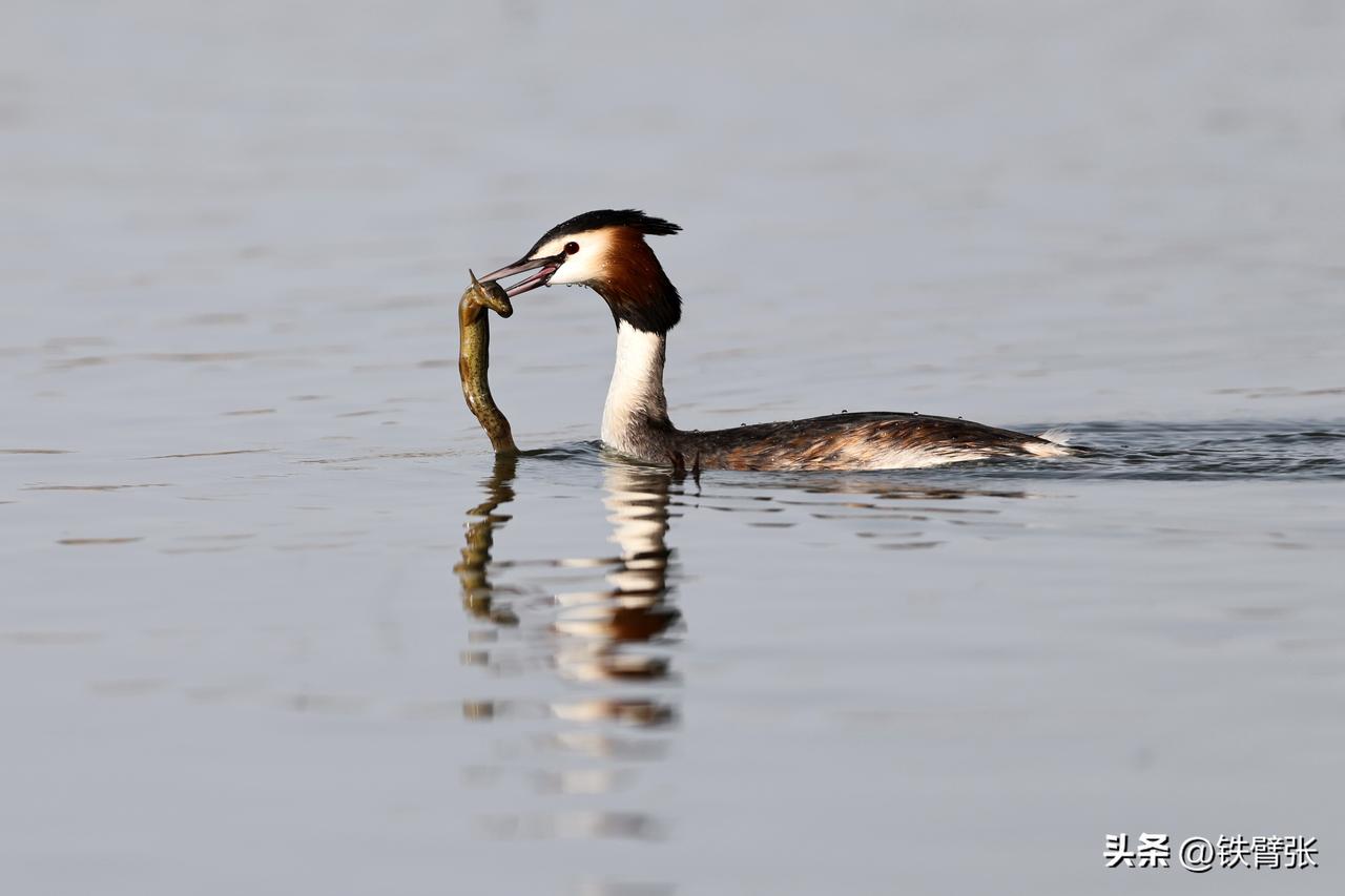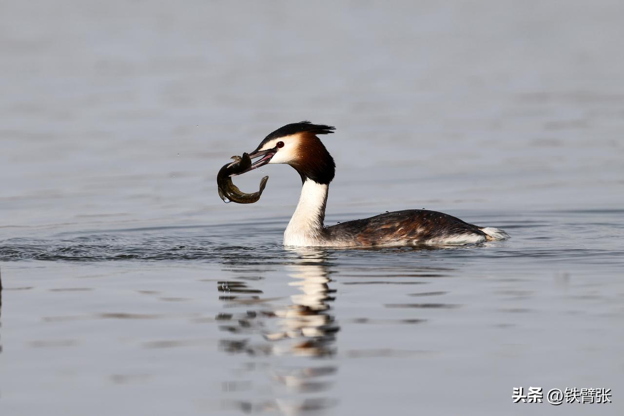 凤头鸊鷉吃泥鳅(拍摄于衡水湖)