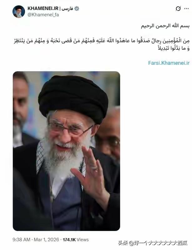 一觉醒来发现伊朗战局大混乱, 伊朗的精神领袖哈梅内伊被袭身亡, 伊朗官方社交平台也发帖证实了这一结果, 难怪之前有报道说哈梅内伊提前就在交接工作, 说明他也清楚自己活不长了。 那么现在整个中东的局势就有点诡异了, 伊朗会不会发疯了似的到处乱打, 现在巴林、阿联酋、沙特、伊拉克、约旦等国的美军基地均遭受袭击, 而且哈梅内伊之后上台的也是强硬派。 中东的炸药桶彻底爆炸了, 接下来各种不曾出现过的情况会接二连三的出现。