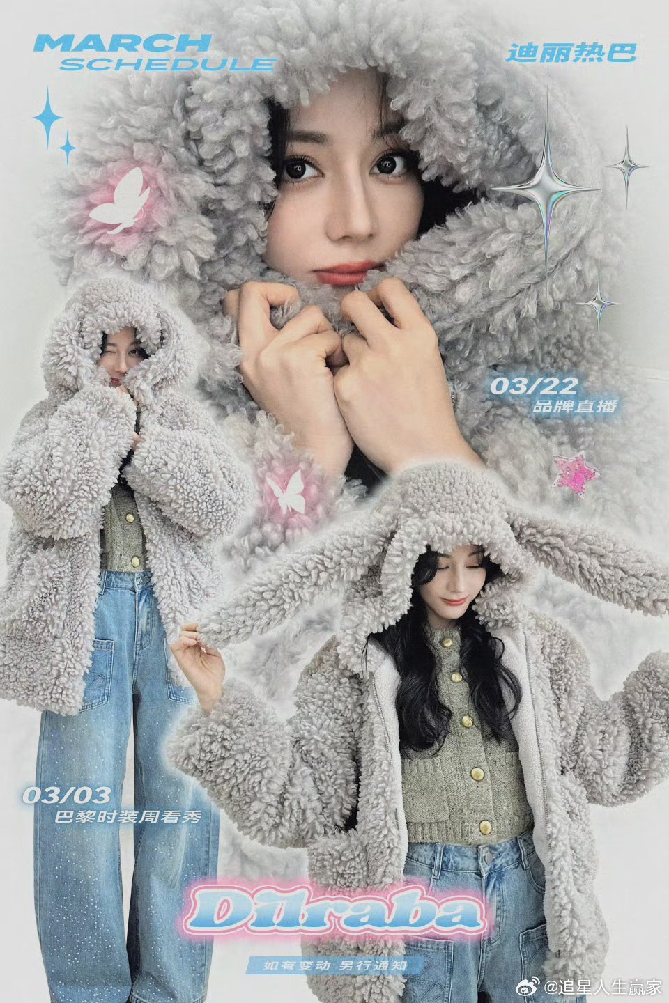 迪丽热巴三月行程图来了:3号时装周看秀22号品牌直播 期待美神闪耀巴黎全场❗️