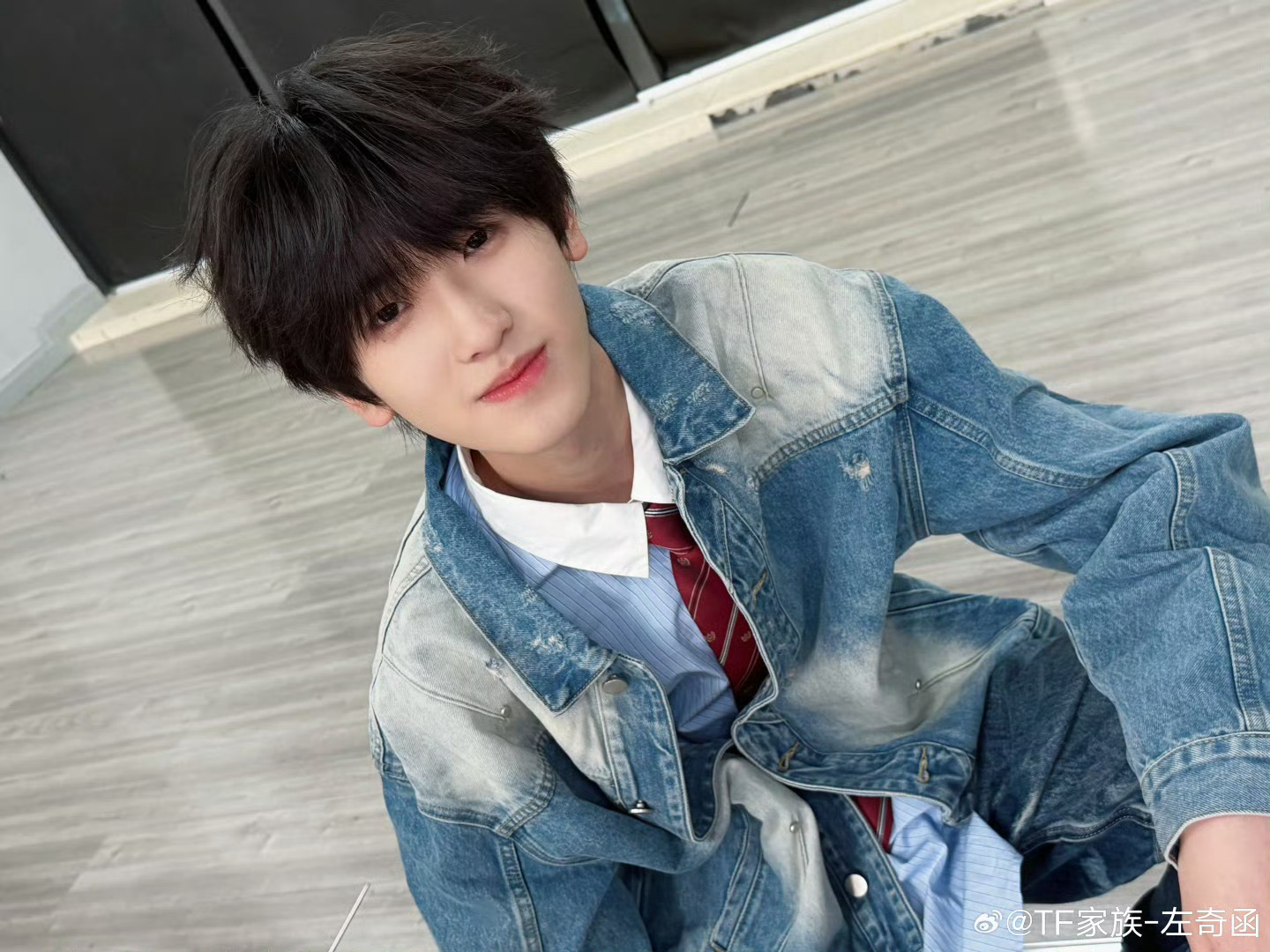 左奇函 要到激动人心的时刻了左奇函牛仔外套红领带六宫格,清爽学长风好帅