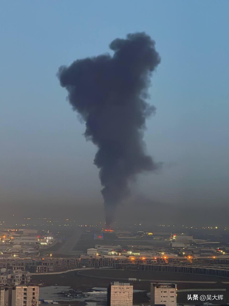 伊拉克埃尔比勒市的美军基地上空升起浓烟柱。