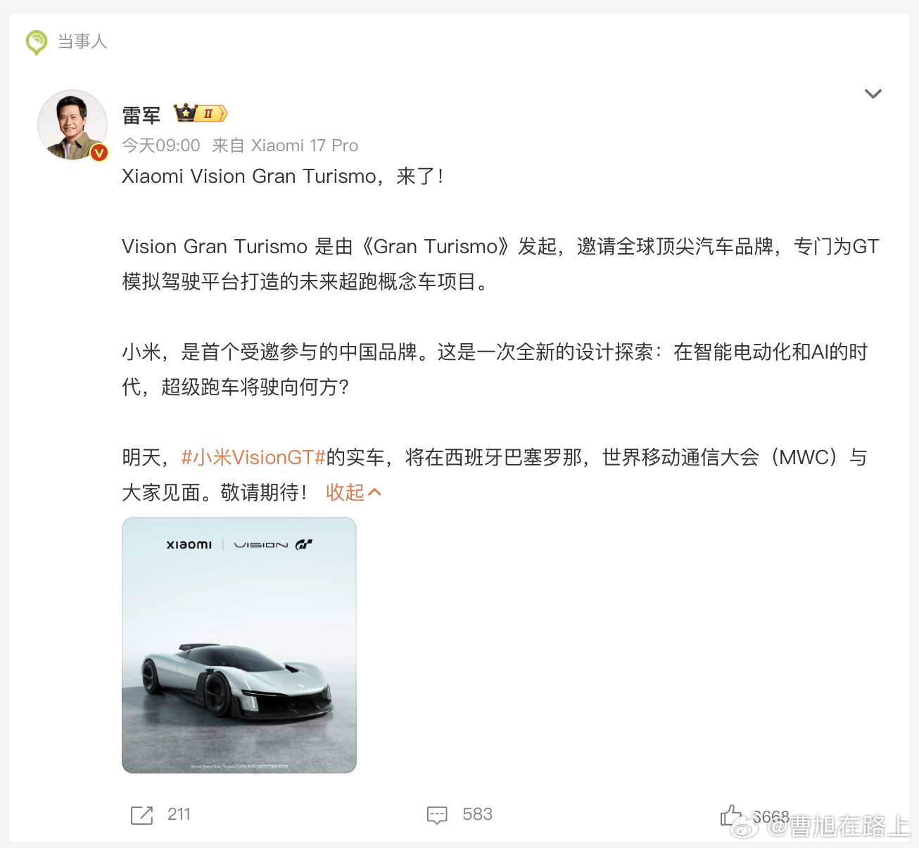 小米正式发布中国品牌首款VGT超跑作为全球第36个首个中国品牌加入VGT顶级俱乐部小米带来第51台Vision Gran Turismo概念车填补了中国汽车在这一领域的空白底气正是来自SU7 Ultra纽北总榜第三的硬核成绩小米VGT不只是超跑,更踏入Hypercar级别这台Vision Gran Turismo 是由《Gran Turismo》发起邀请全球顶尖汽车品牌专门为GT模拟驾驶平台打造的未来超跑概念车项目雷军官宣小米VGT实车现身巴塞罗那小米发布中国品牌首款VGT超跑 我什么时候能够在PS上玩到