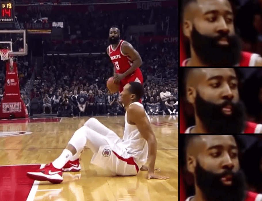在2018年3月1日,火箭客场对阵快船的比赛中,哈登利用变向将约翰逊晃倒在地,但是哈登却并没有立刻出手,而是低头看了一眼倒在地上的约翰逊,在约翰逊站起来后才抬手命中三分。