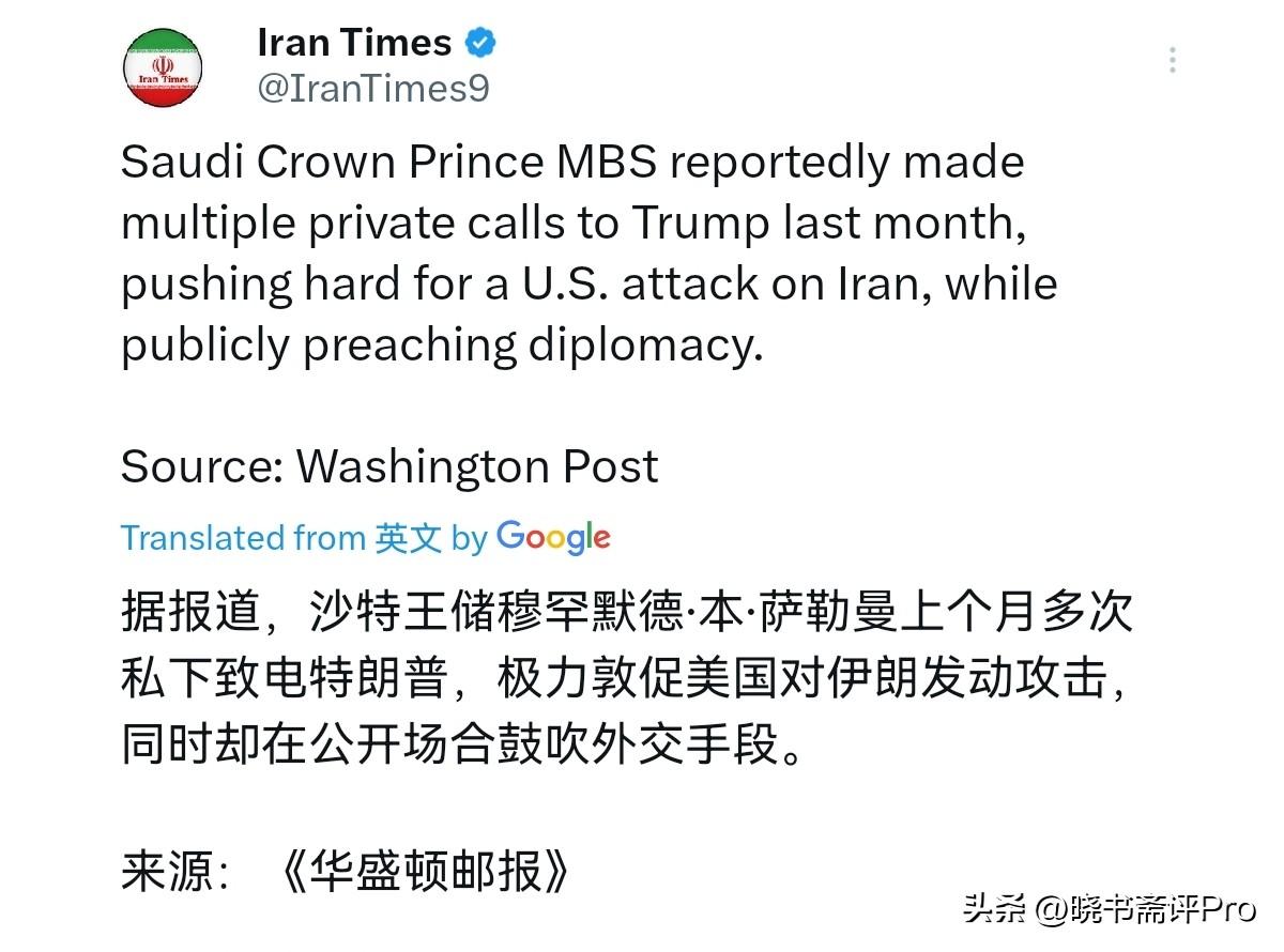 没想到沙特背地里对伊朗捅刀子!3月1日,华盛顿邮报报道称,沙特王储萨勒曼上个月多次与特朗普私下通话,并极力敦促美国攻击伊朗。但同时在公开鼓吹通过外交解决问题。说实话,确实没有想到,搞了半天沙特是在演伊朗,背地里竟然怂恿美国捅刀子。 当然,从沙特的角度而言,这似乎又说的通。其一,沙特与伊朗一个是什叶派的老大,一个是逊尼派的老大,宗教恩怨长达千年。其二,从地缘的角度而言,伊朗在伊拉克、叙利亚、黎巴嫩、也门扩张力量,双方是相互角力。其三,沙特认为伊朗必拥核,沙特自然对此充满安全焦虑。 其四,沙特希望实现经济转型,而伊朗的存在始终是一个区域不稳定因素,这影响沙特吸引投资。在沙特看来,伊朗威胁不除,投资不敢来。因此,沙特确实是有动机借刀杀人。虽然说,在我们的斡旋下,沙特与伊朗握手言和,但是双方的矛盾是冰冻三尺非一日之寒。现在美以联手打击伊朗,如果伊朗被极大的削弱,沙特未必就不愿意看见这样的局面。