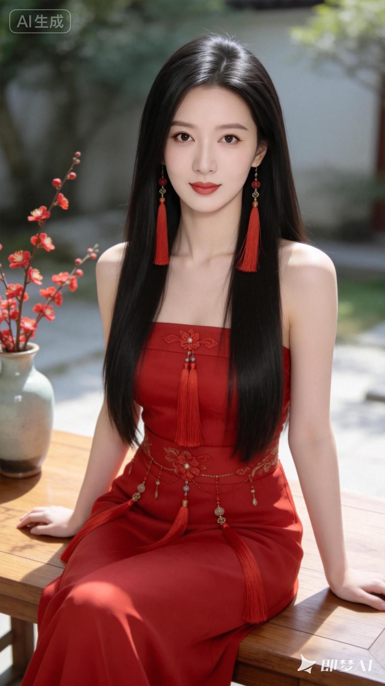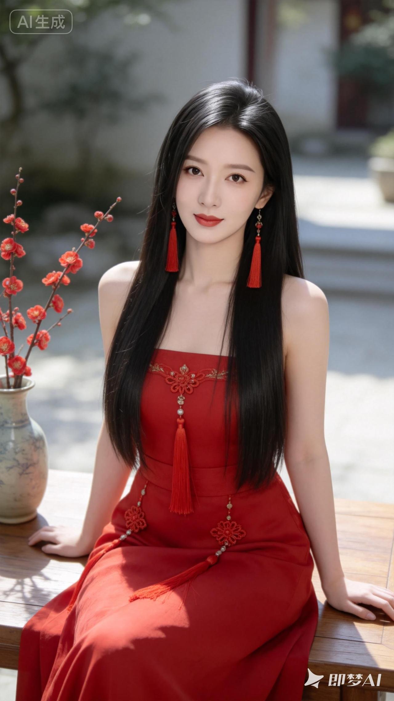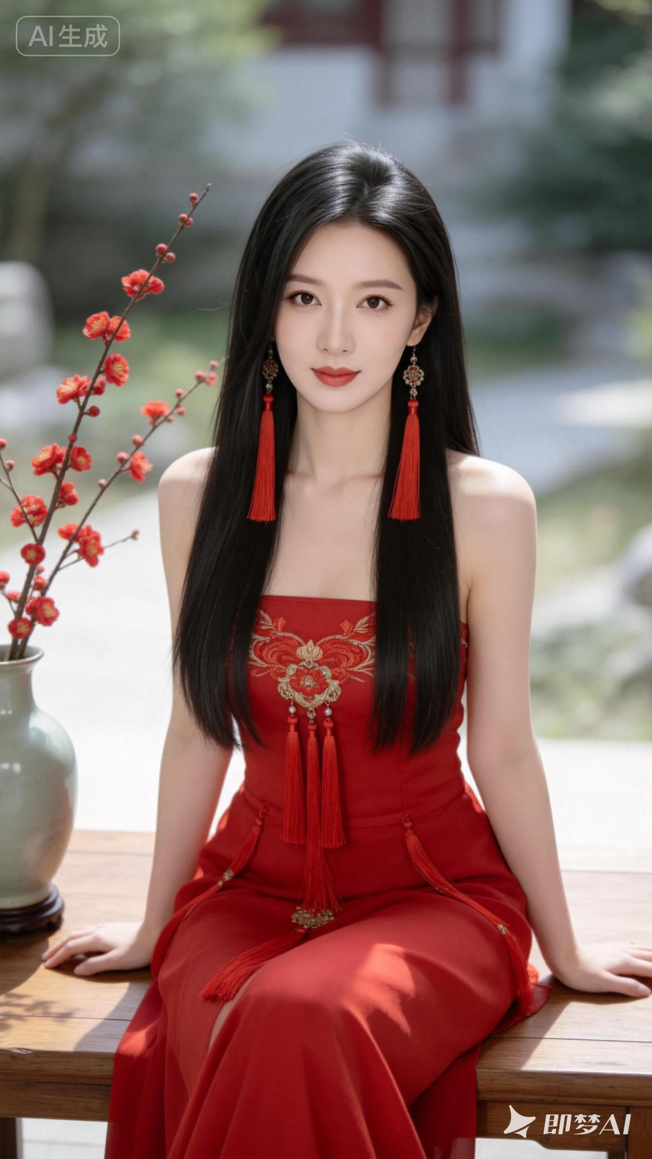 惊艳的东方美人,红衣飘逸,古风韵味十足!🌸💃
