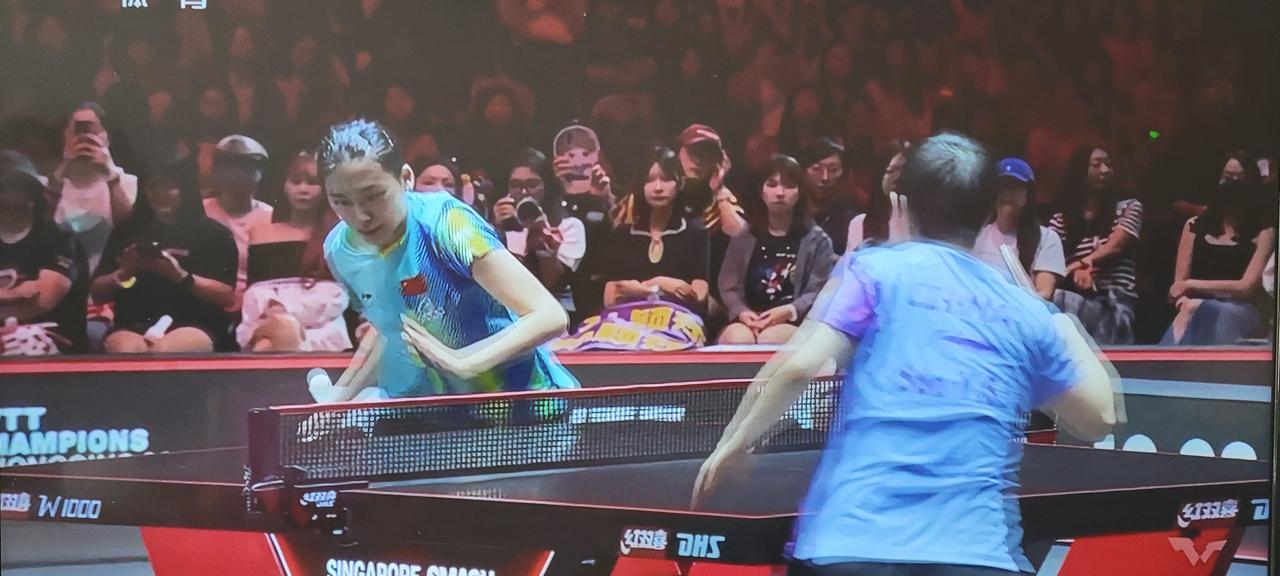 前三局莎莎3:0大比分领先陈熠! 莎莎与陈熠的1/2之决赛,莎莎准备十分充分,发动很快,第一局11:2快速拿下,直接把小将陈熠打懵圈了。第二局小将陈熠不甘落后,打得十分顽强,双方比分交替上升,非常胶着,但是莎莎把握住了关键球,再下一城。第三局莎莎一路领先,拉开了比分,陈熠虽有追分,但为时晚矣,莎莎顺利拿下本局。 莎莎继续加油,争取拿下陈熠,与曼昱会师决赛!