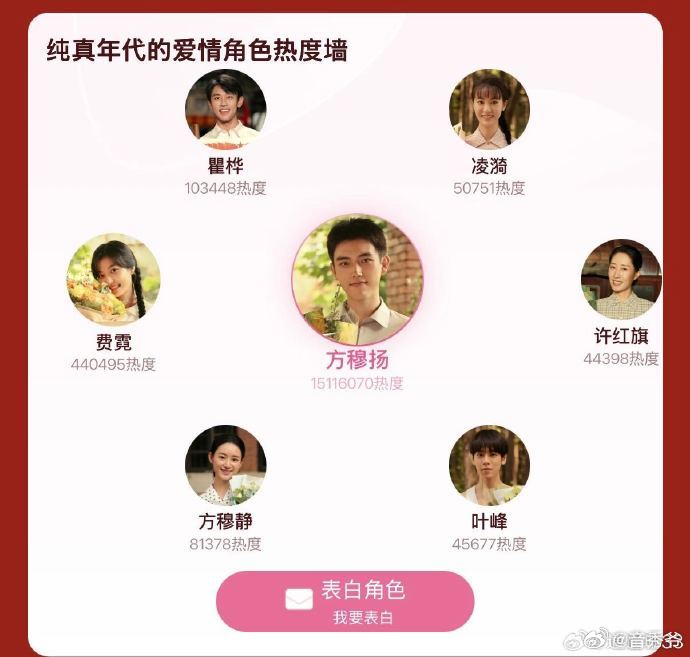 陈飞宇角色热度值破千万奔走相告的好消息!陈飞宇的方穆扬热度值破千万啦,这就是观众