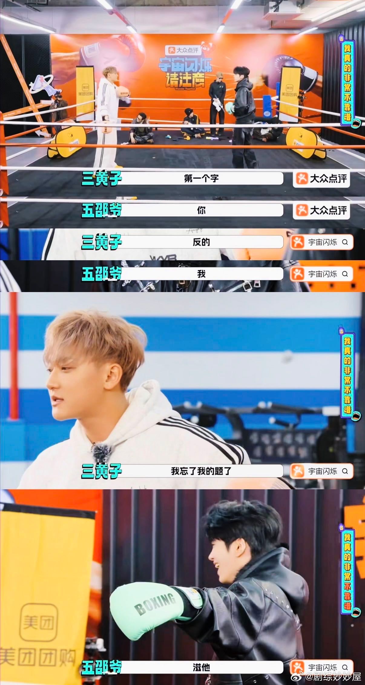 黄子韬节目录到一半要换内裤 黄子韬是宇宙爆闪团的玩具证据再加一!黄子韬在宇宙闪烁请注意 拳击台和牤牛搭子邵子恒组队玩猜词,底下坐着的对手们拿着水枪对着黄小桃疯狂干扰,无论他是在答题还是描述都免不了一场水枪洗礼,游戏结束黄小桃直接向观众请假要下去换内裤,们可怜的🍑团欺地位没跑了!