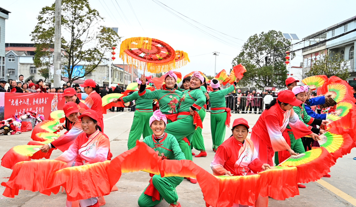 活动现场气氛热烈,锣鼓声、欢呼声、喝彩声交织回荡,汇成一片欢乐的海洋。舞龙队伍身姿矫健,彩龙时而“二龙戏珠”灵动婉转,时而“金龙盘柱”气势如虹,宛若蛟龙出海、腾跃云天;南北狮队同台亮相,跳跃、腾挪、登高等高难度动作轮番上演,威武灵动、妙趣横生,引得现场观众阵阵惊呼;旱船表演轻盈欢快,船娘们彩衣翩翩、轻摇船桨,伴着鼓点踏歌而行;老艺人倾情献演豫南地灯戏,唱腔质朴、韵味悠长。