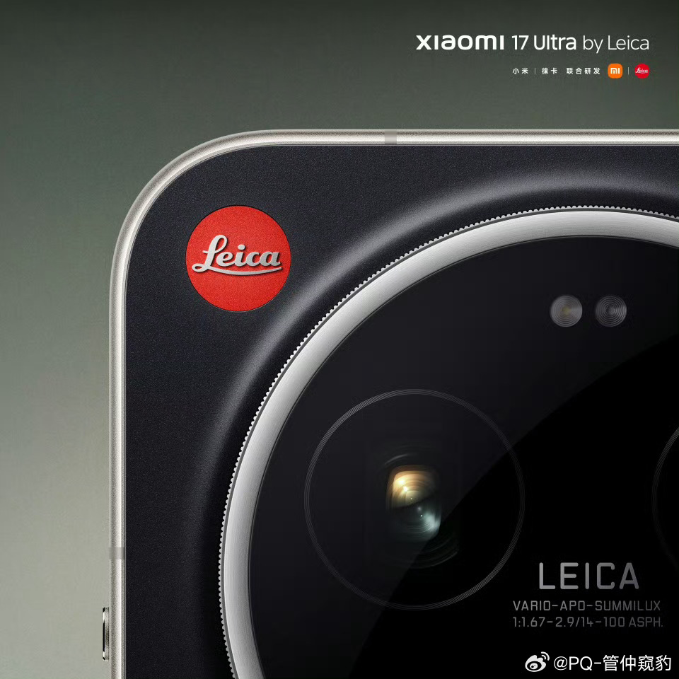 小米17Ultra徕卡版新配色官宣黑色背板配哑光银中框银色中框和相机环色彩一致很