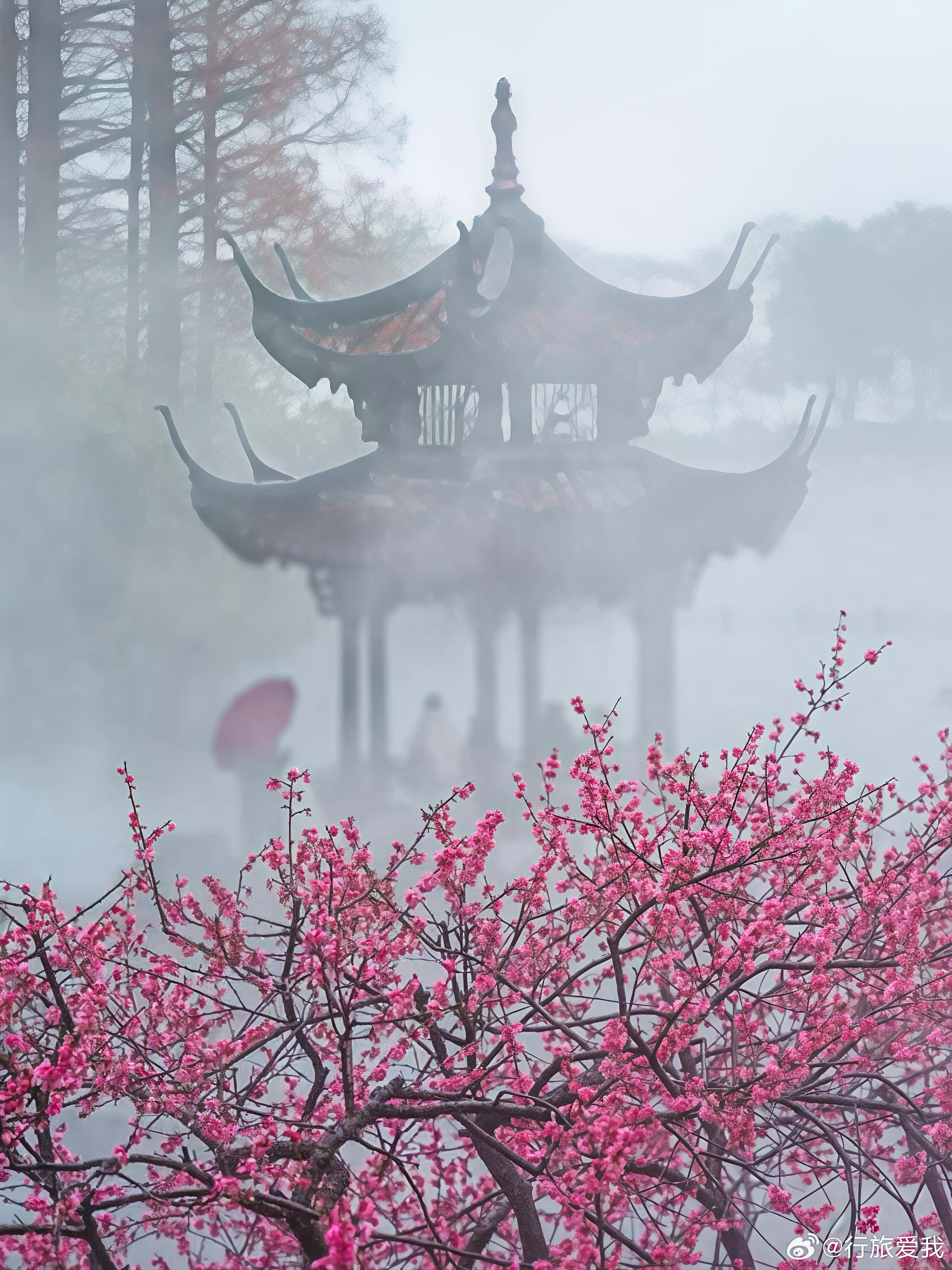 在西湖湛碧楼,我等到雾起梅开。原来真正的江南,不是风景,是一瞬让人安静下来的心。