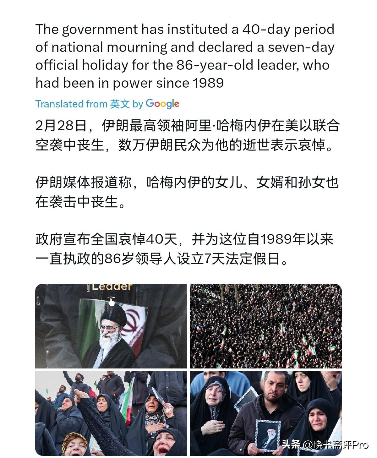 美国是始料不及!特朗普还在号召伊朗群众走向街头,推翻伊朗政府,结果伊朗群众纷纷走向街头哀悼哈梅内伊的死亡!3月1日,外媒报道称,伊朗最高领袖阿里·哈梅内伊在美国和以色列的联合空袭中丧生,成千上万的伊朗人哀悼他的去世。伊朗政府为这位86岁的领导人设立了为期40天的全国哀悼日,并宣布为这位自1989年以来一直执政的领导人放假7天。 很显然,美国和以色列的算盘是要推翻伊朗政权,但是没想到的是这场斩首行动非但没有引发伊朗内乱,反而让整个国家陷入悲痛和同仇敌忾之中。并且,伊朗的领导层仍旧稳固,在伊朗最高领袖哈梅内伊死亡后,伊朗将由伊朗总统佩泽希齐扬、司法部长和宪法监护委员会一名法学家领导国家,伊朗的组织架构并没有散。 现在的伊朗领导层虽然遭遇重创,但是人心尚在,即便现在的伊朗总统比较亲西方,但伊朗全国氛围如此,想要在国家面临如此奇耻大辱的背景下,去亲西方,这根本不可能。再者,临时执政的三人小组里,司法总监与宪法监护委员会的法学家都是强硬派核心,革命卫队更是牢牢掌控军权,此时任何妥协退让都会被立刻贴上“叛国”标签。美国要解决掉伊朗,把伊朗打造成亲美新基地,没有那么容易。
