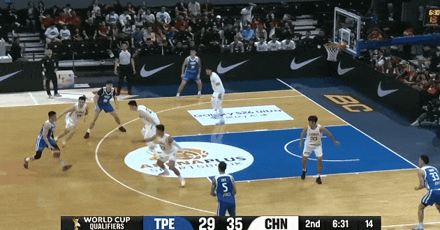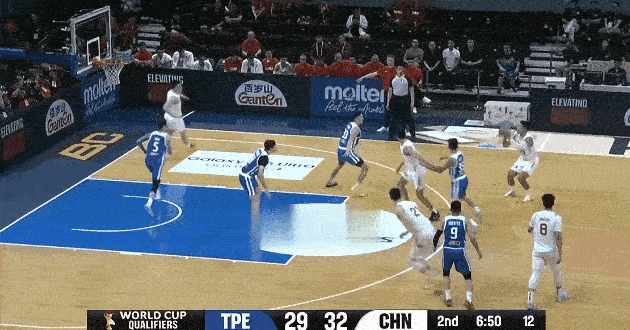 陈盈骏干拔三分投进目前4中4得到9分,中国台北追平中国男篮