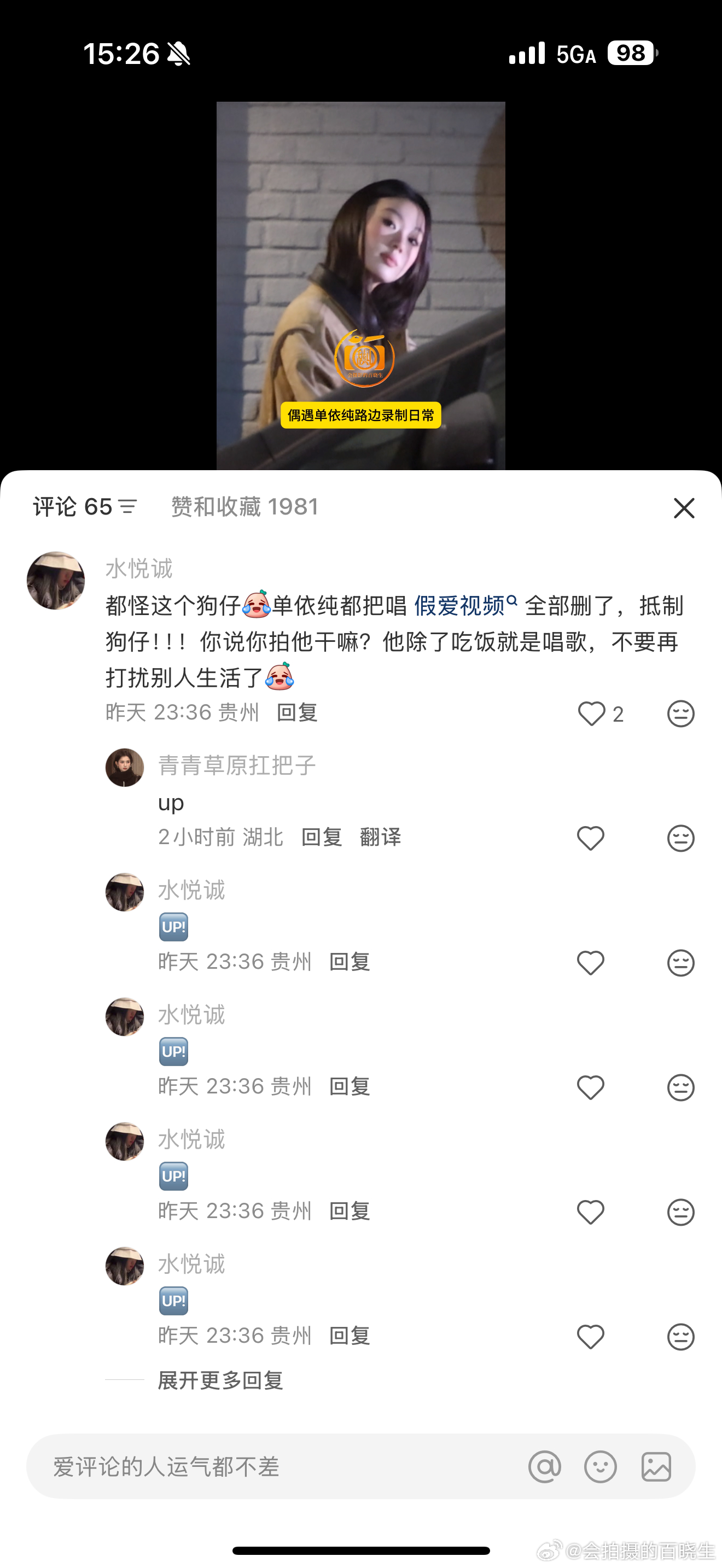 单依纯 为什么我发了假爱的路透之后,她把视频给删了????? 我这是做了什么????