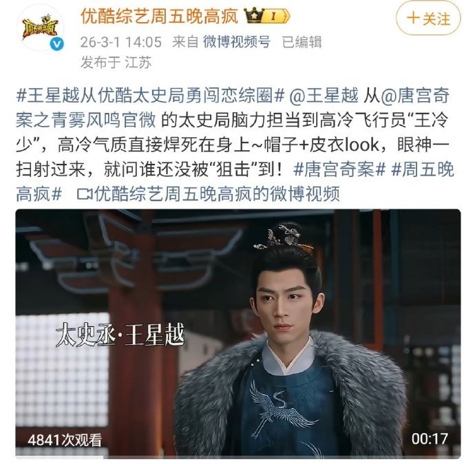 优酷把王星越宠上天王星越粉在优酷吃得太好了 优酷花式宠王星越!《唐宫奇案》持续互动,又让《周五晚高疯》梦幻联动,粉丝福利拿到手软~周五晚高疯