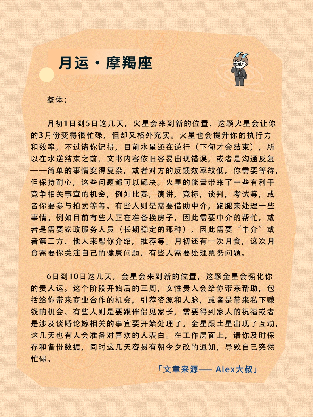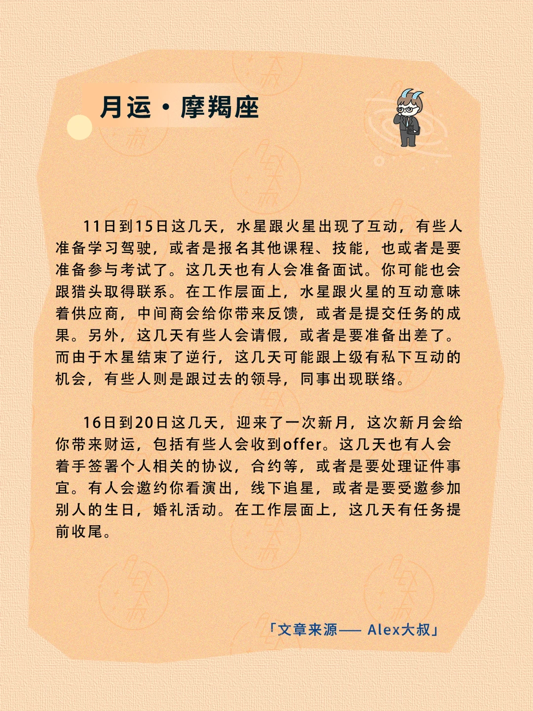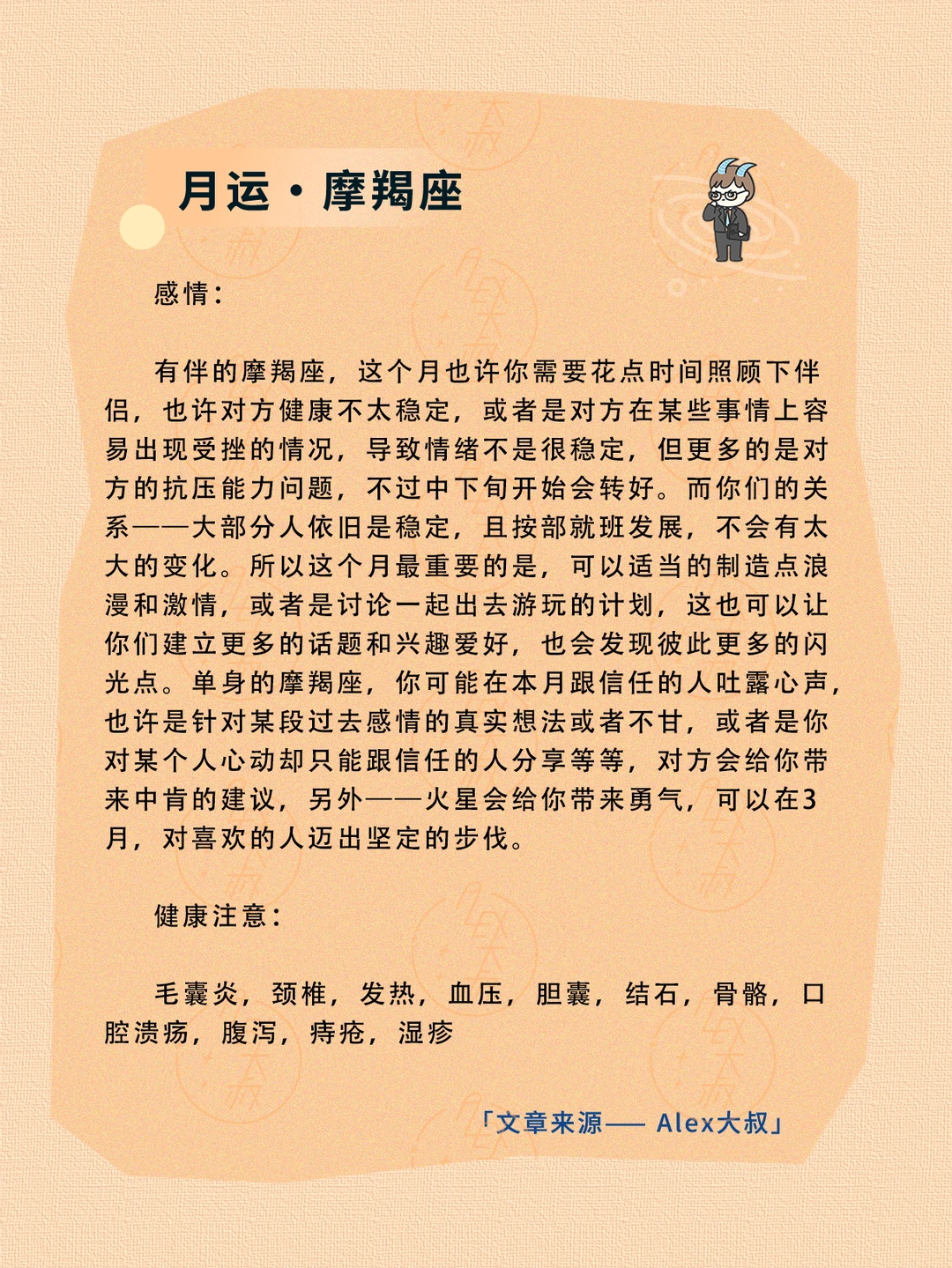ALEX大叔 我的星座 星座运势 射手座运势 摩羯座运势